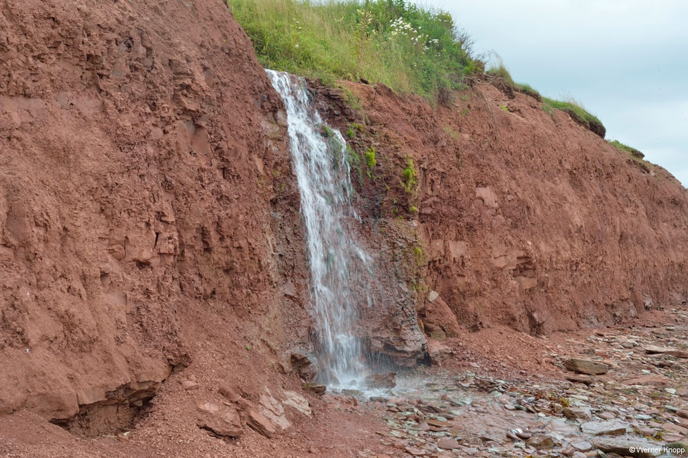 Die Insel ist unglaublich schön, die Strände sind weitläufig und wir machten im Cabot Beach Provincial Park einen langen Spaziergang am Strand. Leider habe ich den roten Sand nicht mitgenommen. Aber Werner hat alles mit seiner Kamera festgehalten!!! Die Insel ist zwar die kleinste Provinz Kanadas, aber doch so groß, dass wir uns entscheiden mussten, welchen Teil wir uns ansehen wollen. Wir fuhren in den PEI National Park, Brackley Dalvay und machten dort eine schöne Radtour und sahen große, helle Sanddünen, rote Steilküsten, Feuchtgebiete und kleine Seen. Viel Glück hatten wir mit dem Wetter, das uns doch sehr an unser norddeutsches Wetter erinnert. Immer wieder kam die Sonne heraus und nur einmal regnete es kurz. Ins 17 Grad kalte Wasser sind wir aber nicht gegangen (nur mit den Füßen!).