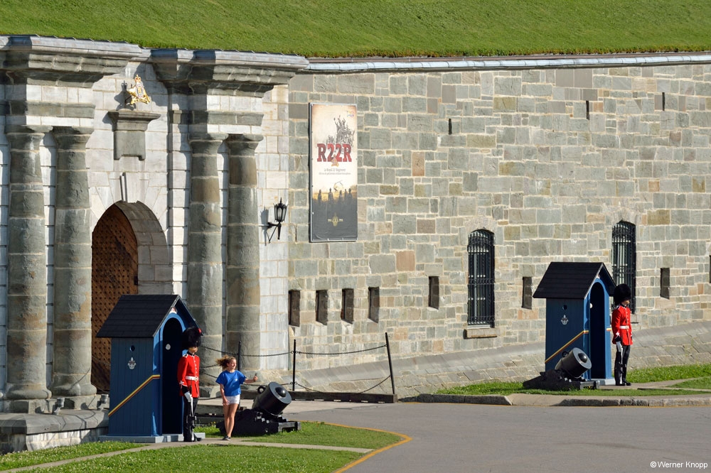 Weiter ging es hinauf zur „Citadelle“, einer vielzackigen Festung (1820-50), die noch heute von der kanadischen Armee genutzt wird. Wir mussten viele Treppen steigen und ich fragte mich schon, wofür das wohl gut sein soll. Aber der Ausblick bei herrlichem Sonnenschein war der Lohn und wie überall in Kanada, gab es genügend Platz auf der Wiese für die vielen Besucher.