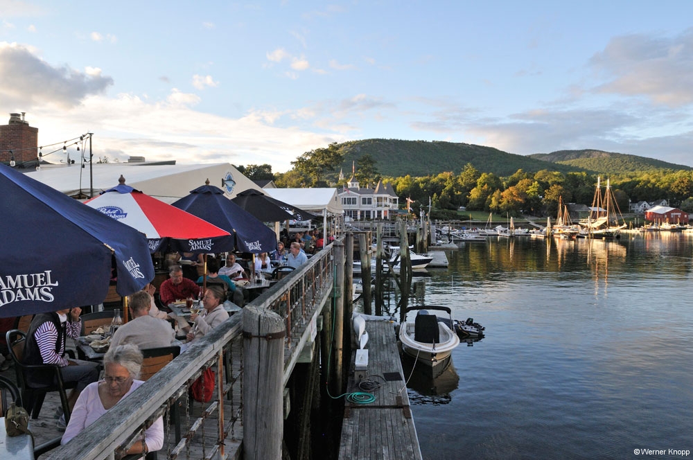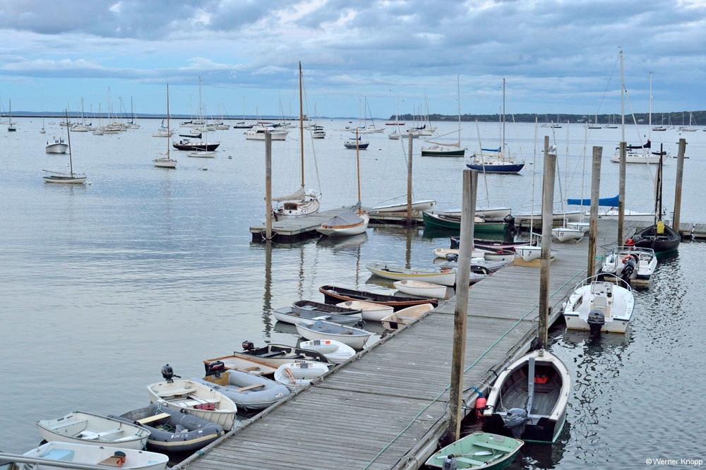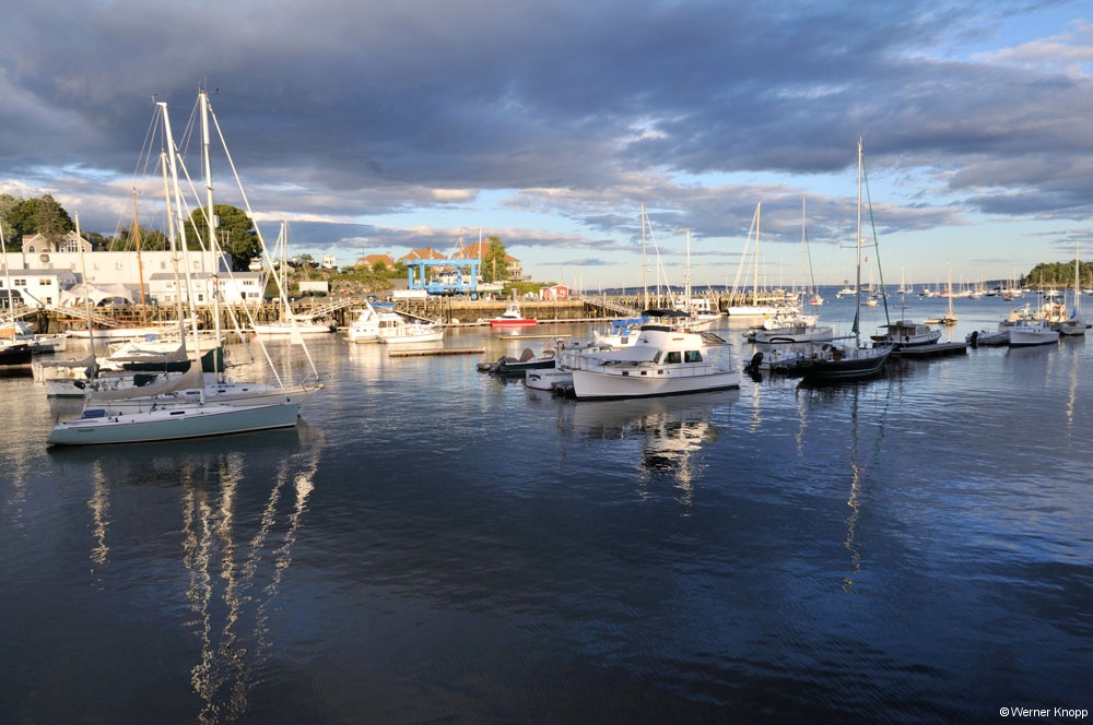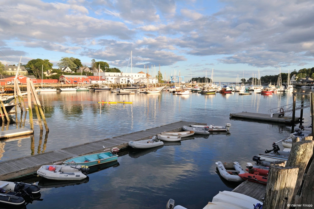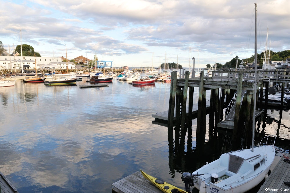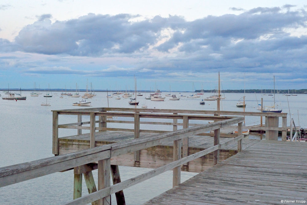 Weiter ging es nach Camden, einem Städtchen zu Füßen des 260 m hohen Mount Battie, wo wir die Abendsonne im Jachthafen genossen. Diese kleine Stadt hat viel Charme und man sah erst auf den zweiten Blick, wer sich hier einen Urlaub leisten kann (5-Sterne-Hotels, Sportwagen). 😉 Ganz anders wirkte das Fischerstädtchen Rockland, das wir uns in der Abenddämmerung anschauten. Hier wehte uns der Fischgeruch vom Hafen entgegen und wir hörten auf der langen Seebrücke dem Möwengeschrei zu. 🙂