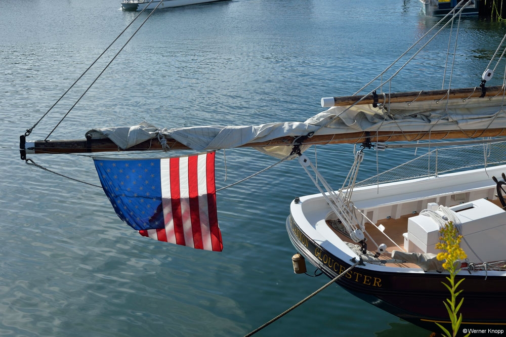 In der Stadt hielten wir am „Gloucester Fishermens and Fishermens Wives Memorial“ inne. Viele Männer kamen nicht vom Meer zurück…Diese kleine Stadt hat ihre Ursprünglichkeit erhalten. Es roch intensiv, aber angenehm 😉 nach Meer und Fisch. Werner sah einem Lobsterfischer gespannt zu, wie er seine Käfige mit Ködern füllte. Nach einem leckeren Essen im „Causeway Restaurant“ (Clamchowder und Haddock) kamen wir in der „Rocky Neck Art Colony“ mit Judith aus Minnesota ins Gespräch. Sie fertigt Seiden- und Batikbilder an und gab uns den Tipp, den Indian Summer in Vermont zu erleben. Im Vergleich zu Minnesota ist der Winter am Cape Ann harmlos, meinte sie. 🙂