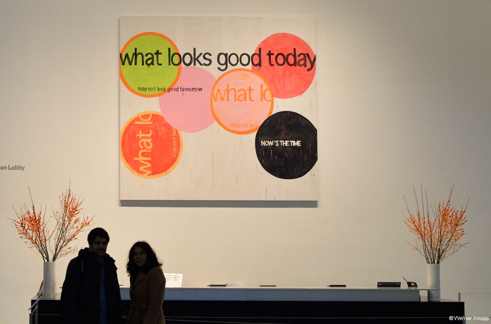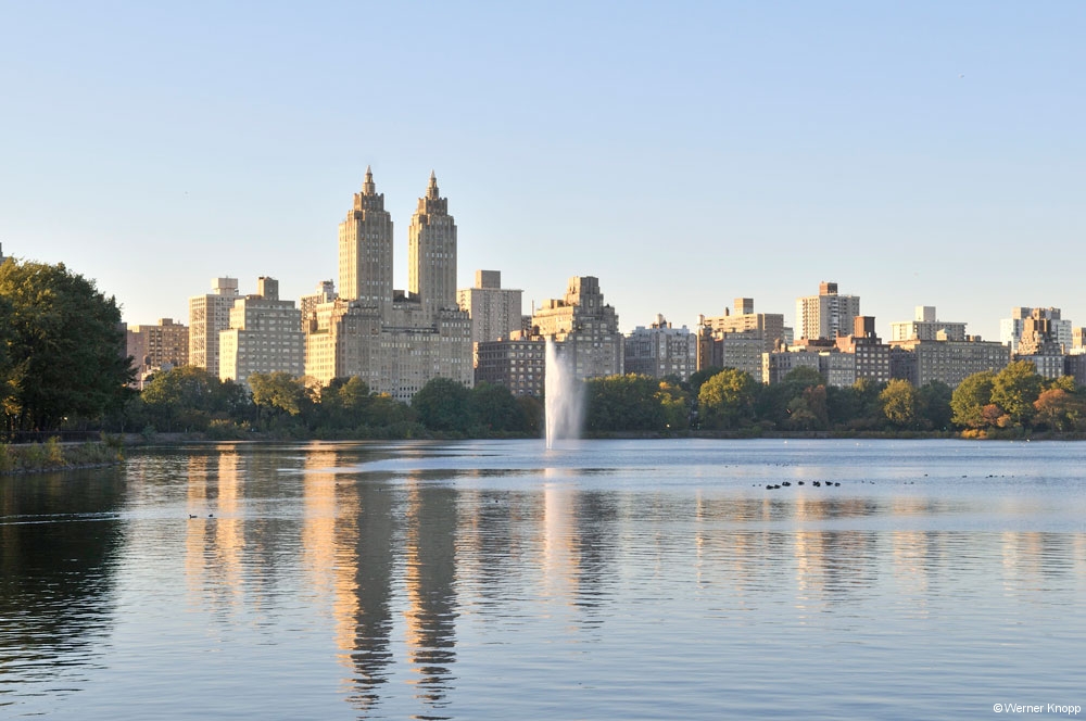 Zum Abschluss wollten wir zum Guggenheim Museum gehen, den interessanten Bau wollte Werner gerne fotografieren. Also mussten wir einmal quer durch den Park gehen und uns nördlich halten. Ja, was soll ich sagen? Nachdem wir einige Wege gegangen waren, kamen wir wieder in der Nähe der Gedenkstätte an. 😉 Bewegung tut gut! Nun passten wir auf, dass wir in die richtige Richtung gingen und kamen am Jackie Onassis Reservoir an. Der Weg um den See wurde bevorzugt für Jogger angelegt, die diesen „Running Track“ gut nutzten. Spaziergänger wurden wohl geduldet, denn wir waren nicht die einzigen. Endlich auf der östlichen Seite angekommen, fanden wir das Museum schnell. Es sah klein aus, verglichen mit dem, was wir bisher gesehen hatten. 😉