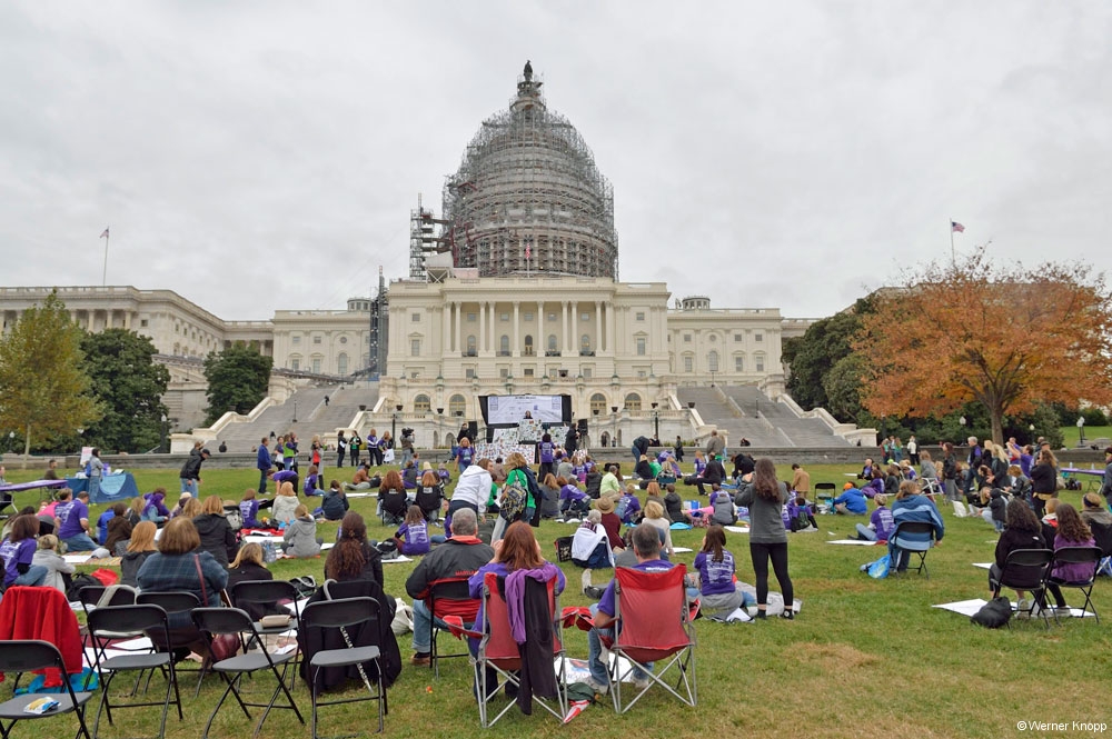 Am Capitol angekommen strömten die Leute in Richtung Eingang. Eine Frau hielt ein Plakat in der Hand – sie wies den Kongressteilnehmern, die gerade eine Rallye machten, den Weg, wie sie uns erklärte. In diesen Tagen fand ein Kongress der „American Academy of Pediatrics“ statt. Im selben Moment eilte eine Gruppe von Menschen an uns vorbei, von der mir eine Frau sehr bekannt vorkam: Renate Künast 🙂 . Als ich abends herausfinden wollte, an welchem Treffen Renate Künast in Washington D.C. teilnahm, erfuhr ich in allen Beiträgen nur von ihrem Fauxpas bei Facebook. 😉 (Sie hatte das Lincoln Memorial mit George Washington verwechselt.) Hier eine deutsche Politikerin zu sehen fand ich schon spannend. 🙂