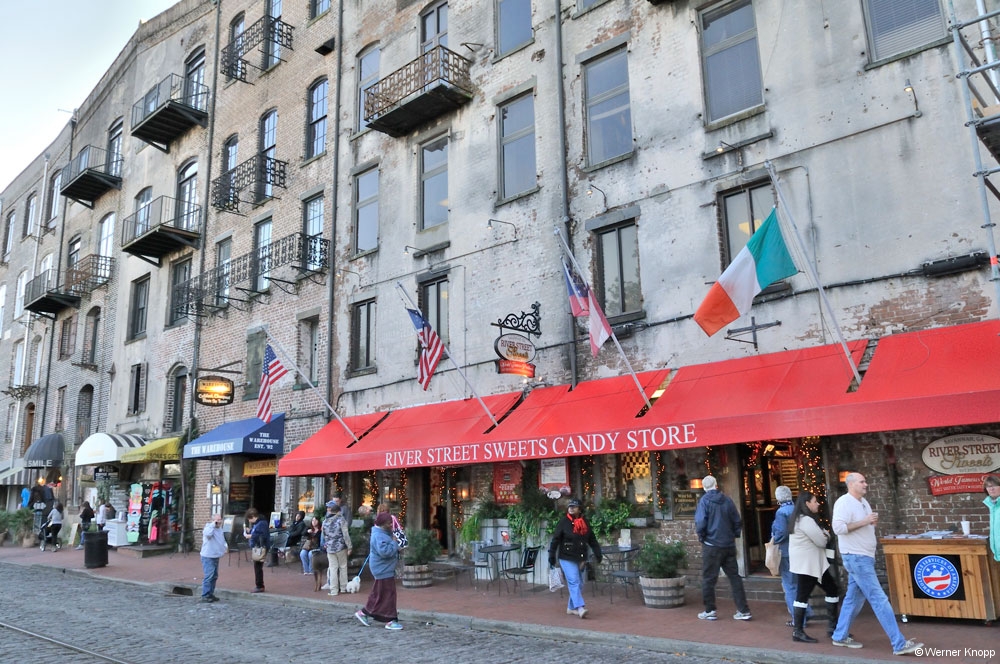 Zum Abschluss gingen wir die touristische „Riverstreet“ entlang, in der man alles kaufen kann, was man nicht braucht. đ In den alten Speichern, in denen frĂŒher Baumwolle gelagert wurde, finden sich zahlreiche kleine LĂ€den und Restaurants wieder.
