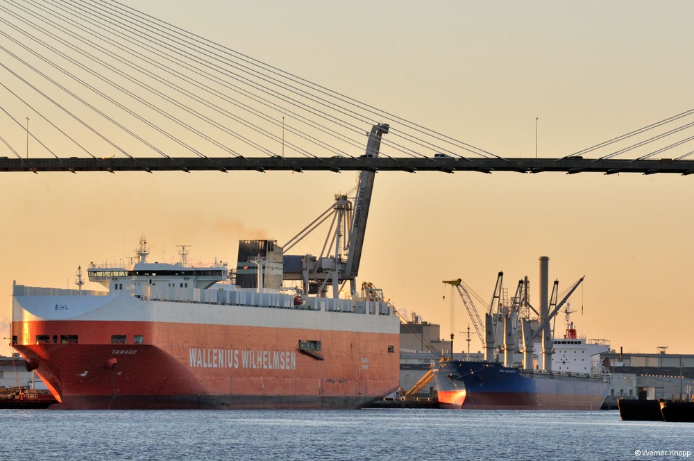 Mehrere Containerschiffe hatten zwischenzeitlich im Hafen angelegt, ein willkommenes Motiv fĂŒr den Fotografen!