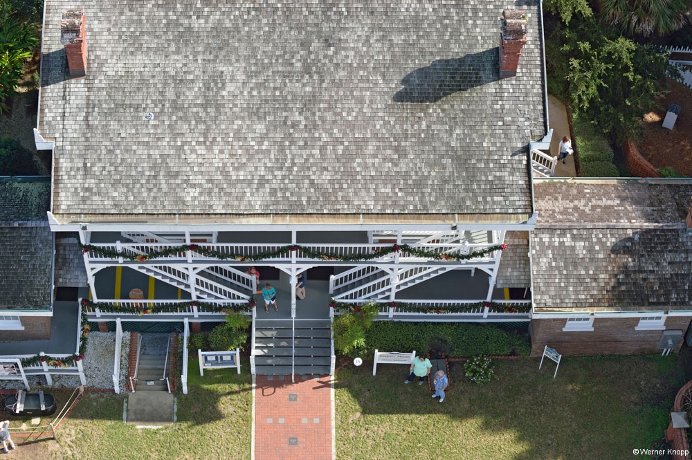 Die schöne, alte Stadt St. Augustine wurde im Jahr 1565 von Spaniern gegründet und war lange Zeit in spanischer Hand. Viele alte Gebäude sind heute noch in der Stadt zu finden, z. B. „The Oldest Wooden School House“ aus dem frühen 18. Jahrhundert. In der St. George Street sahen wir viele alte Häuser mit schönen Veranden und viele kleinen Läden, die uns jedoch selten dazu verleiten, etwas zu kaufen. 😉 Natürlich wanderten wir auch zum „Fort Matanzas National Monument“, das an diesem Tag (Thanksgiving) geschlossen war, so wie viele kleine Läden auch. Die Steine, aus denen das Fort und auch andere Häuser in der Stadt gebaut waren, wurden aus Muscheln, Sand und ?? hergestellt. Man konnte die Muscheln in den Mauern gut erkennen. 🙂 Bei unserem Stadtrundgang gingen wir auch zur „Bridge of Lions“, wo wir einen schönen Blick auf die Matanzas Bay hatten.