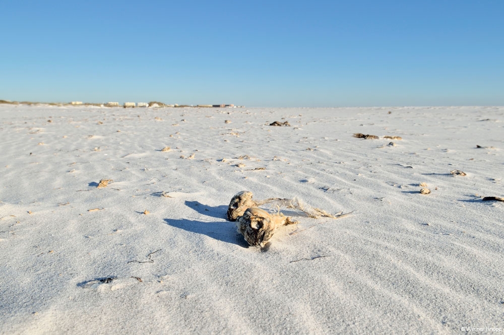 Am Eglin Air Force Base Beach bei Dustin machten wir unseren letzten Halt in Florida und genossen bei einem Spaziergang die Sonne, den Sand und die Dünen bei 12°C. Nachdenklich machten uns die unzählig vielen verwesenden Fische am Dünensaum. Leider konnten wir die Ursache nicht herausfinden, sahen aber kleine schwarze Partikel im weißen Sand….