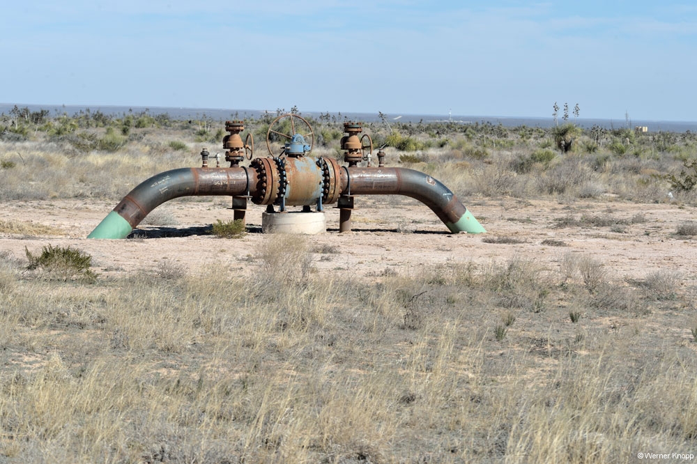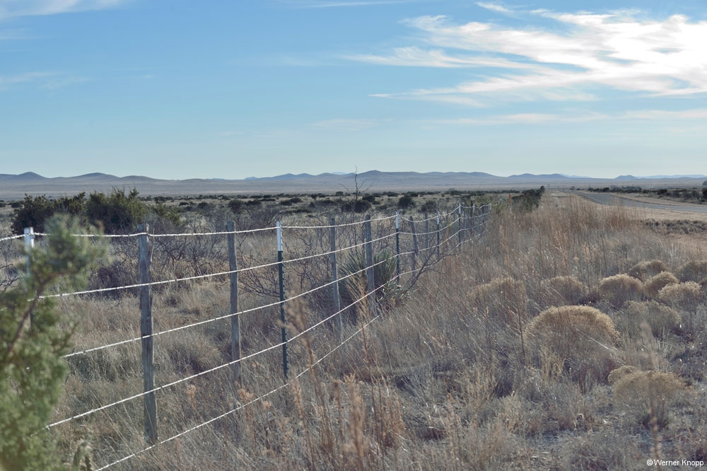 Die Nebenstrecke RM652 bringt wieder Abwechslung, sie ist hügeliger, wir sehen die Guadalupe Mountains vor uns und nur noch Natur!!! 🙂 In New Mexico angekommen, wehte auch wieder ein anderer Zeitgeist: Willkommen in der Mountain Time! Auch ansonsten wehte es heftig an diesem Tag, so dass wir aufpassen mussten, dass uns die Tür nicht aus den Angeln flog. Der Staub wirbelte nur so durch die Luft. 💨