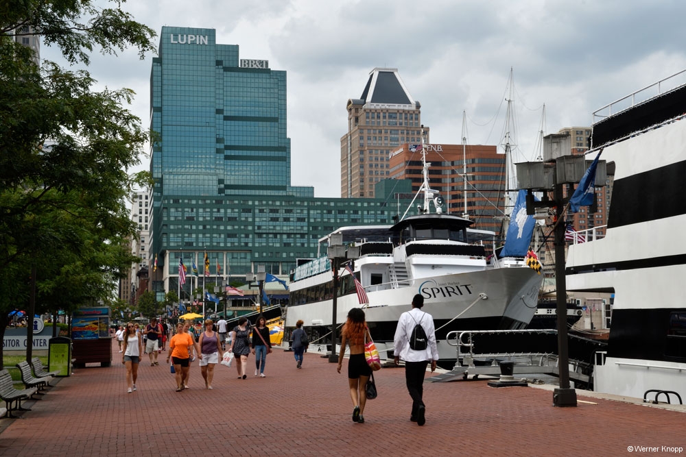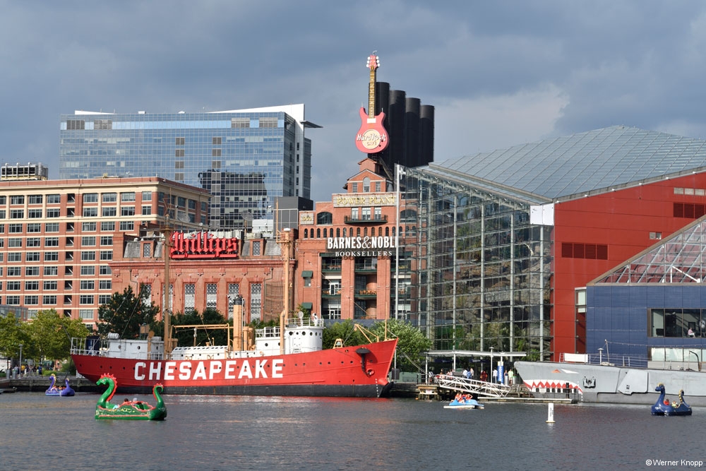 Wir schlenderten am Inner Harbor mit der interessanten Skyline entlang und genossen die Atmosphäre. Auf einem Pier fand gerade ein Soundcheck für das bevorstehende Konzert statt. Wenig später strömten die Leute zum Eingang, wo jeder Einzelne auf Waffenbesitz abgetastet wurde.