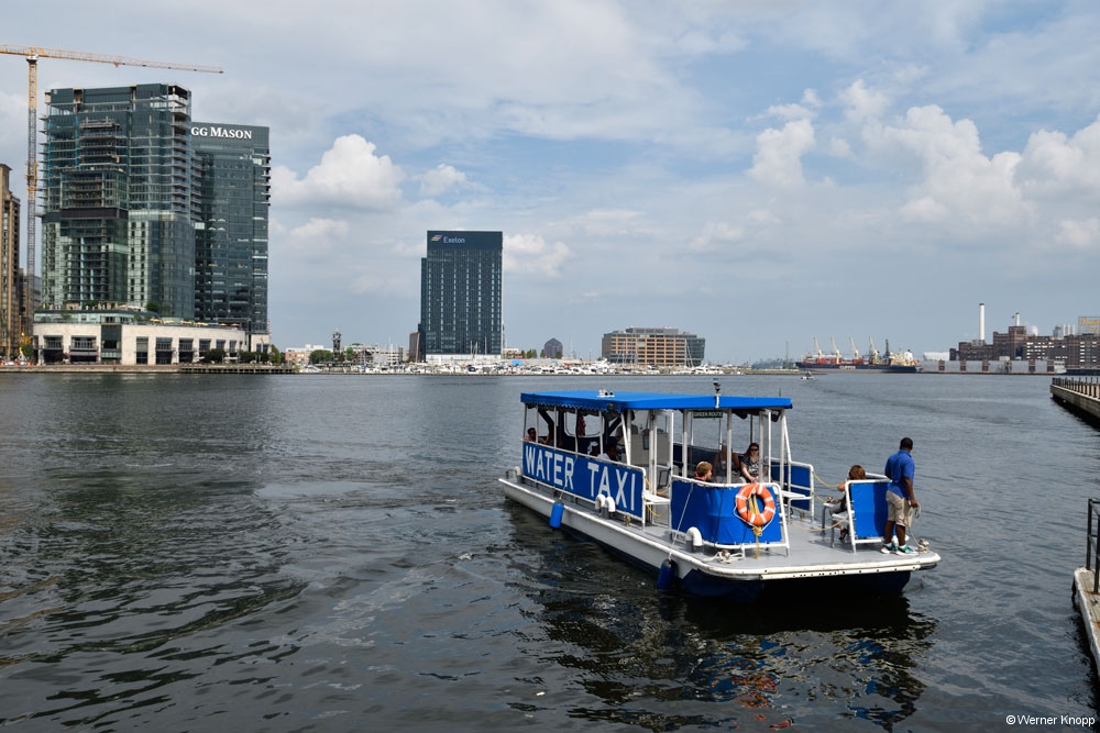 Im Hotel angekommen machten wir uns auf den Weg zum Inner Harbor – ein Katzensprung! Es war unglaublich heiß in Baltimore. Als wir am Kiosk eine Flasche Wasser kaufen wollten, trauten wir unseren Ohren nicht: 4$ für eine kleine Flasche – nicht mit uns! Wir machten eine Rundfahrt mit dem Wassertaxi, das gut gekühltes Wasser für 1$ bereit hielt. Wunderbar! 😀