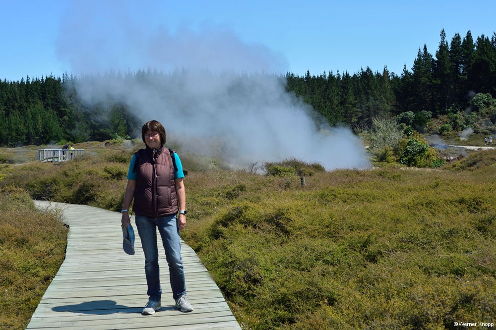 Wir übernachteten noch einmal in Rotorua und trafen am nächsten Morgen doch tatsächlich Shirley und Stewart aus Nelson auf dem NZMCA-Platz. Nach einem netten Plausch trennten sich unsere Wege wieder. 🤗