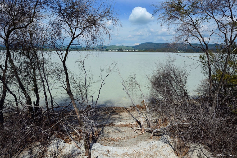 Am nächsten Morgen fuhren wir noch einmal zum Lake Taupo, dem größten neuseeländischen See – 40km lang, 26 km breit und 120 m tief. Er ist wie der Lake Rotorua und andere Seen in der Umgebung eine riesige Caldera. Kaum vorstellbar, welche Kräfte hier vor langer Zeit die Landschaft geformt haben! Diese Gedanken machten wir uns jedoch nicht, als wir bei frischem Wind einen ausgiebigen Spaziergang am See unternahmen. Viele Radfahrer nutzten den gemeinsamen Weg. 🚴♀️🚴♂️🚴🏼♀️