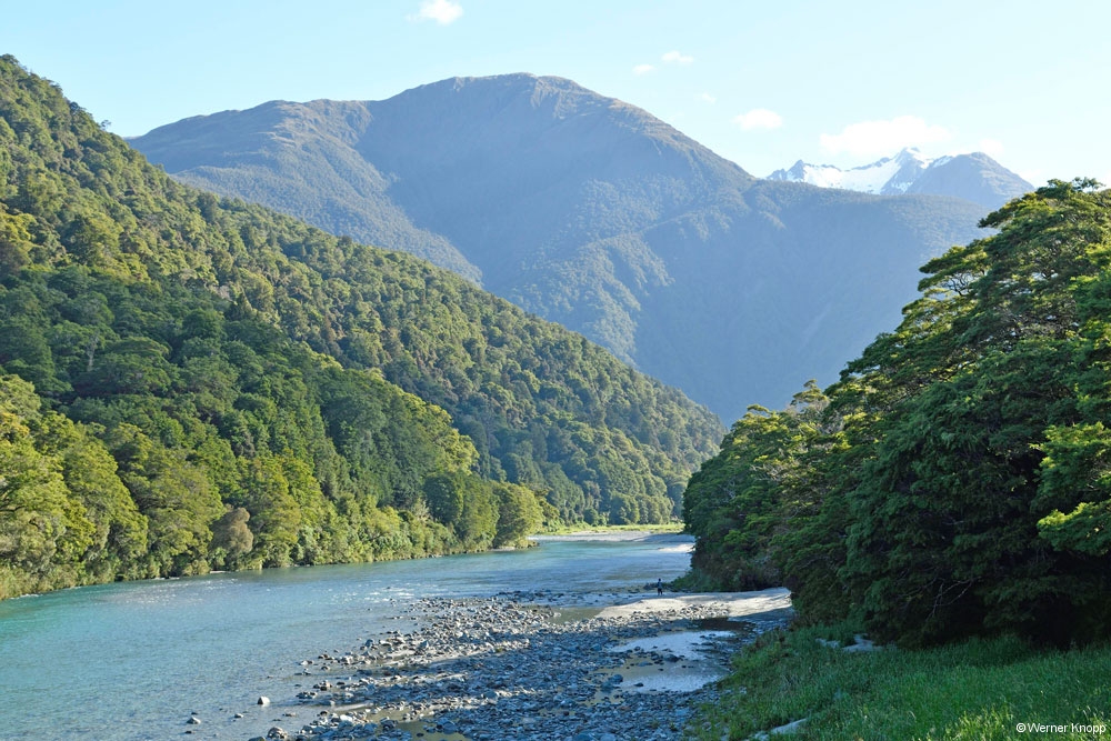 Wir wanderten um den kleinen Lake Mistletoe mit gleichnamigen Bäumen und hielten danach bei den Te Anau Downs an. Die Pioniere brannten das Grasland ab und bewirtschafteten hier das Land. 🔥Die vielen Lupinen, die wir überall blühen sehen, wurden auch von ihnen eingeführt. Wir hielten am Mackay Creek und fuhren durch die schöne Landschaft des Eglington Valleys. Das Wetter war wechselhaft, mal Sonne, mal Regen, einfach ungemütlich! 😳