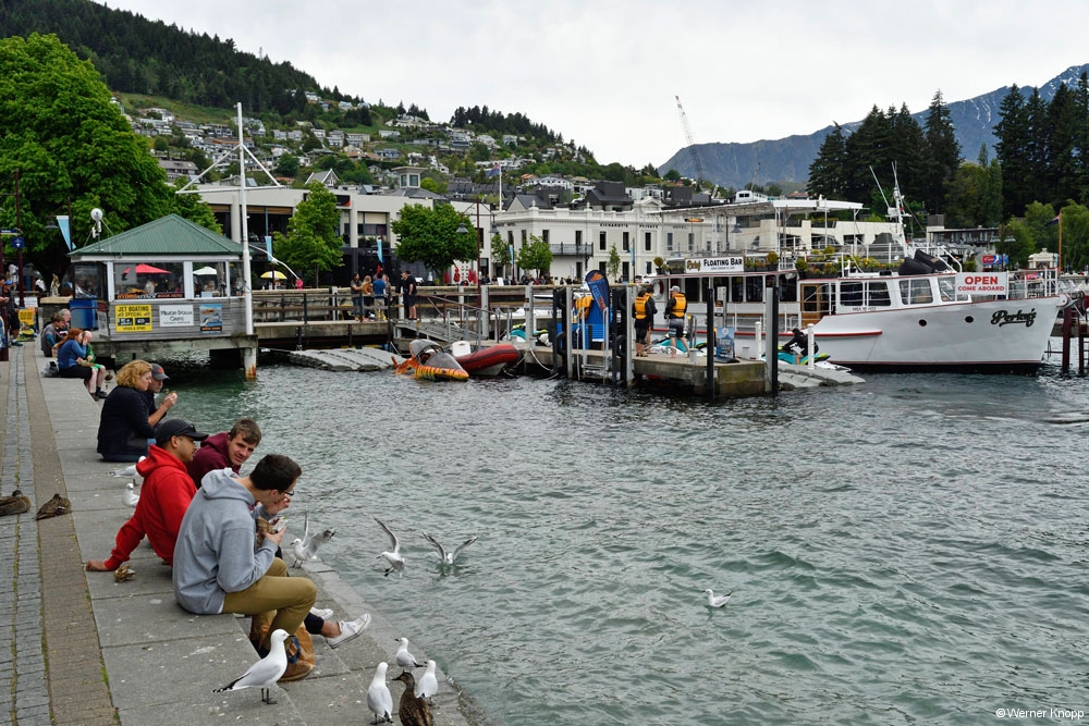 Da auch der nächste Tag verregnet sein sollte, kamen wir nicht auf die Idee zum Milford Sound zu fahren, sondern gingen zu Fuß in die Stadt. 👟👟Wir suchten ein Waschcenter auf und holten uns Informationen im Info Centre. Es blieb trocken an diesem Tag, aber das Wetter war wechselhaft.