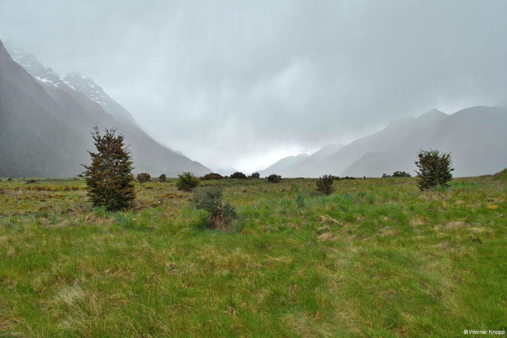 Schon vorher hatten wir das „Red Tussock Reserve“ im Vorbeifahren bestaunt. Diese Gräser wollten wir jedoch bei besserem Wetter fotografieren.