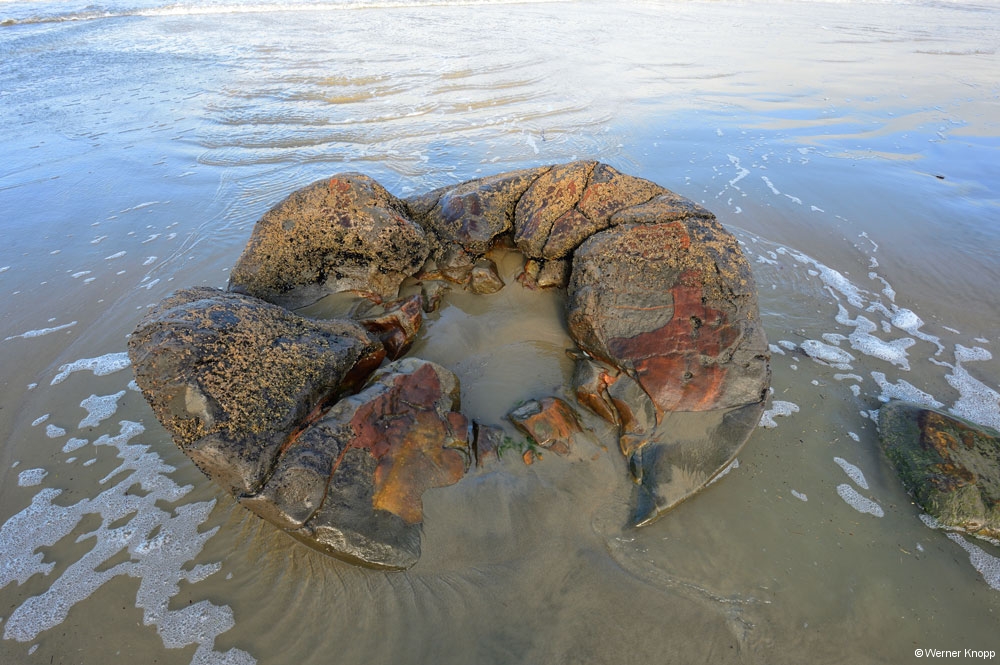 Wie dem auch sei – das ganze dauerte ca. 4 Millionen Jahre. Es vergingen wieder viele Millionen Jahre, bis sie aus dem Meeresboden an die Oberfläche kamen. Ihr Durchmesser beträgt zwischen einem halben und zweieinhalb Metern – das Gewicht ist unglaublich groß.😉 Trotzdem schafften es Andenkenjäger die kleineren Exemplare einfach mitzunehmen.🤨