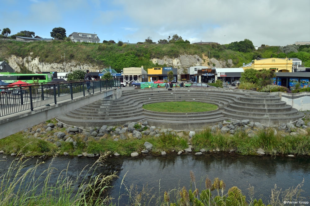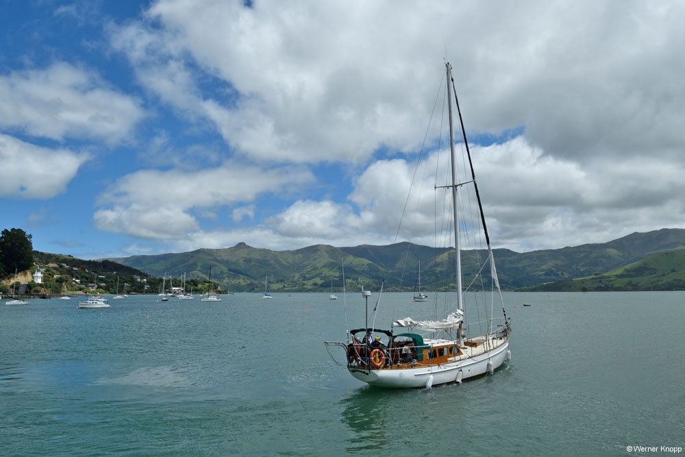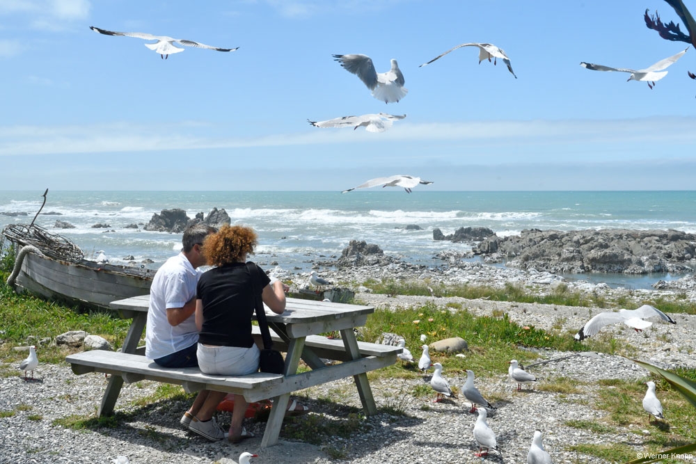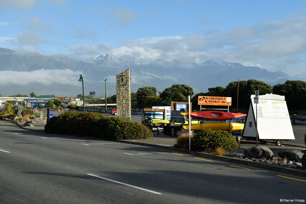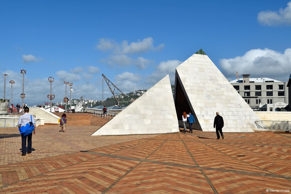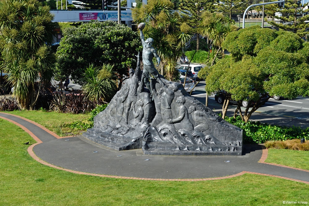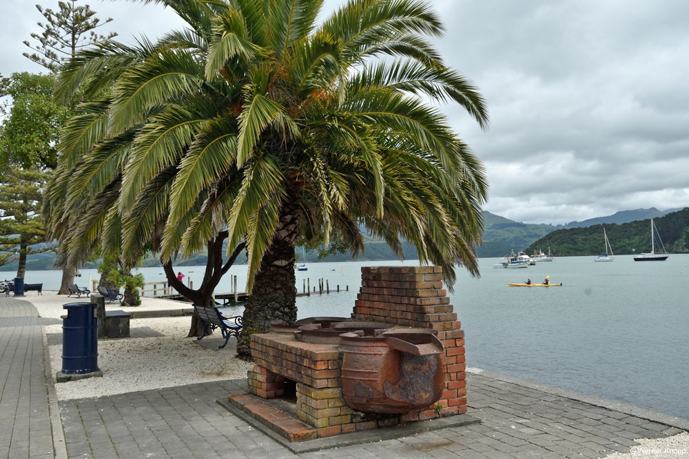 Während unseres anschließenden Rundgangs durch die Stadt kam Wind auf, der immer mehr zunahm. 🌬Als wir an der Orientel Bay entlang zurück zur Evans Bay fuhren, wurde das Meer aufgepeitscht. Das war kein leichtes Fahren für Werner. 💨Im Hafen angekommen, beobachteten wir, wie zwei Personen versuchten ein kleines Rettungsboot auf einen Trailer zu fahren.🚤 Mindestens 15, wenn nicht 20 Versuche waren vergeblich.😳 Immer wieder drückte der Wind das Boot weg. Wir waren richtig erleichtert, als die Aktion endlich gelang. 😌