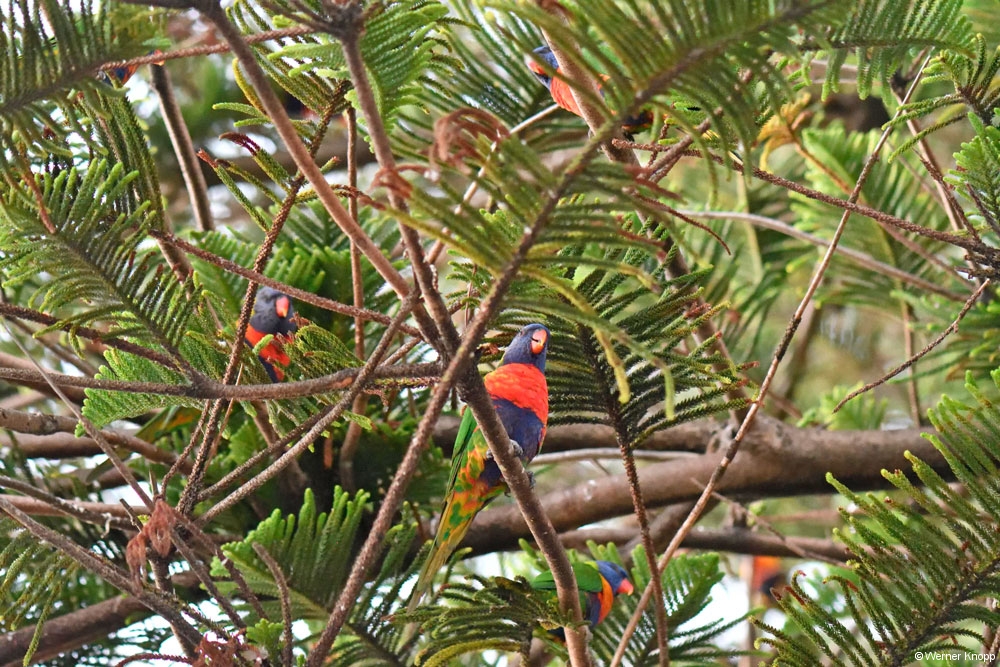 Als wir die muntere Schar besuchten, übten sich die Jungen gerade im Fliegen. Es war spannend ihnen beim unbeholfenen Starten und Landen zuzusehen. Die Jungen waren verschieden alt, so dass wir noch einige Vögel mit Flaum am Körper beobachten konnten. Menschenscheu sind diese Tiere nicht…😊
