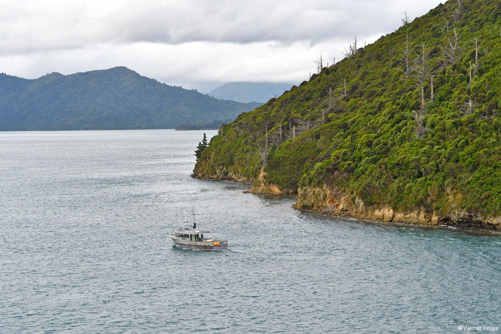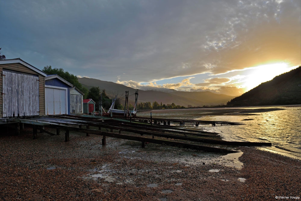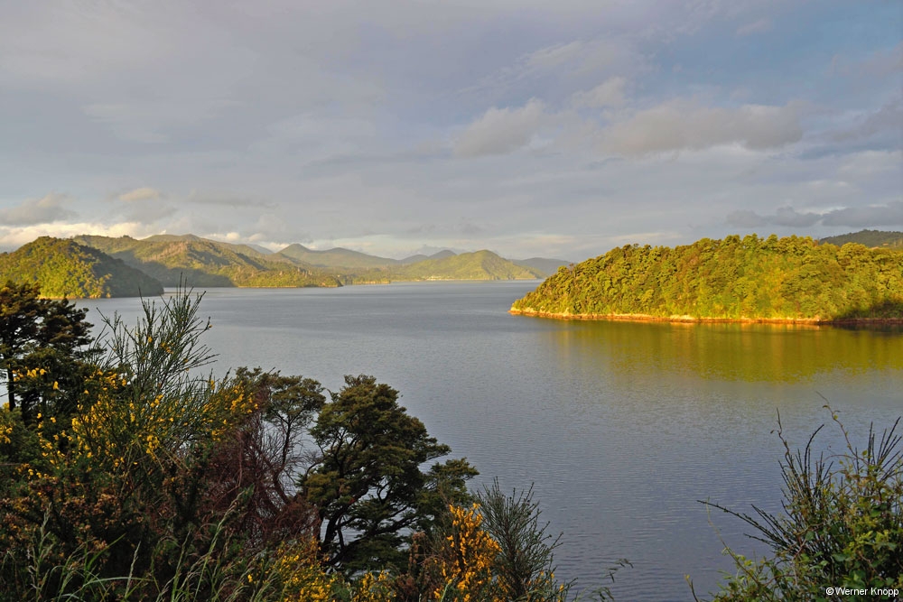Nach einem kleinen Einkauf in Picton fuhren wir den wunderschönen Queen Charlotte Scenic drive (Narrow winding Road). Die Fahrt bei bestem Licht (Abendsonne) war ein Traum, aber ich konnte die kurvige Fahrt nach der Schifffahrt nicht so recht genießen… 😳Wenn wir in acht Tagen das Land verlassen (am 19.12.) werde ich vieles vermissen, die kurvenreichen Strecken jedoch nicht…😉