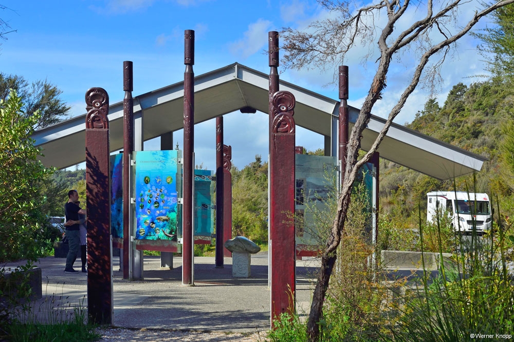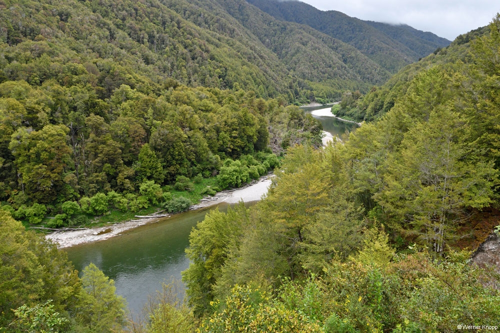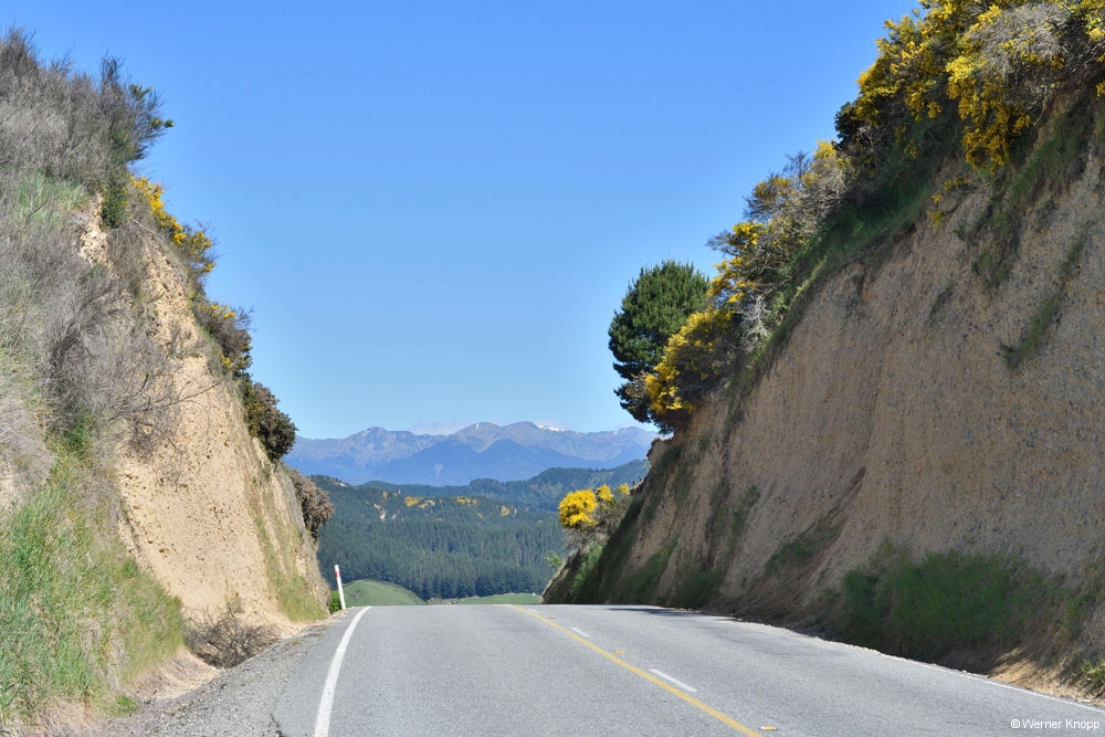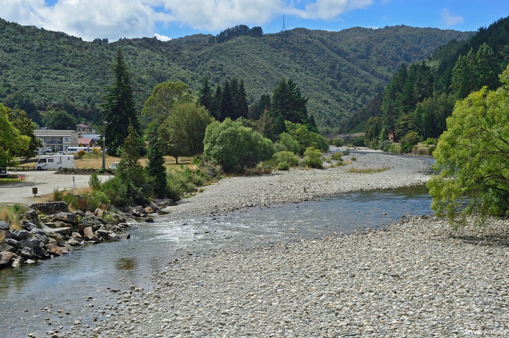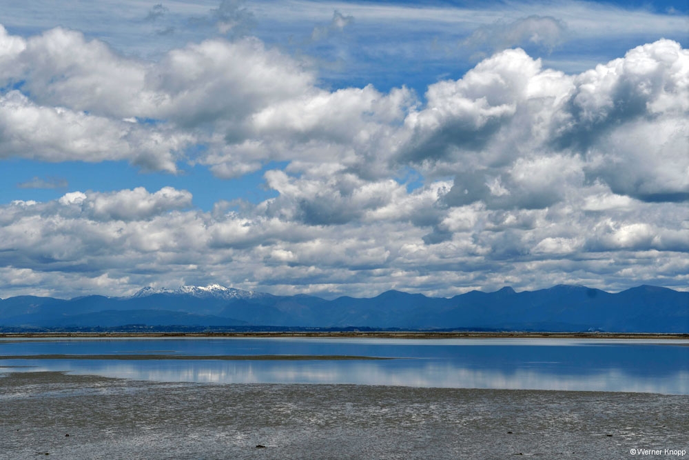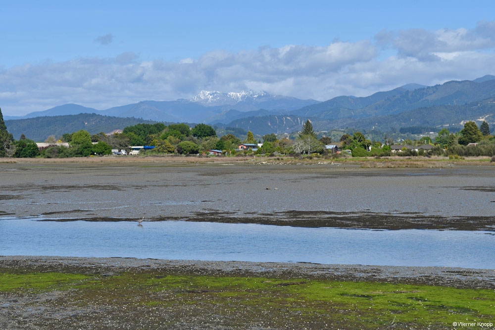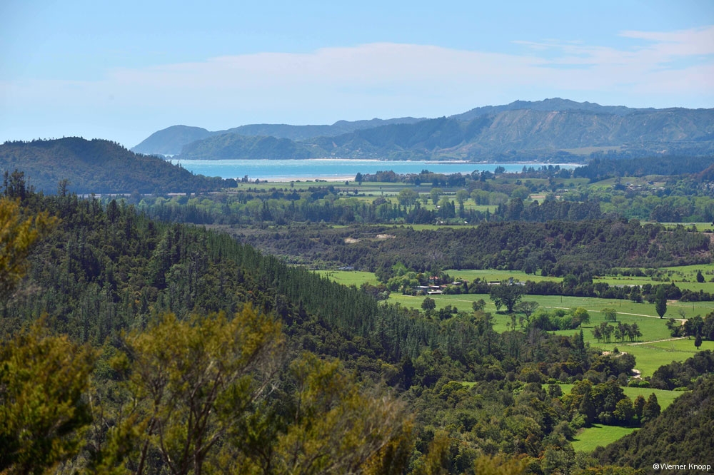 Cape Farewell war unser nächstes Ziel und wieder einmal wurden wir von einer kurvenreichen Fahrt diesmal über die Takaka-Hills überrascht. Haltebuchten gab es nur wenige, so dass Werner hier wieder sehr konzentriert fahren musste. Spitze Felsbrocken schauten aus dem grünen Gras heraus, das sah interessant aus. Auf unserem Freedom-Platz am Fluss angekommen sahen wir lauter große Pfützen, in denen wir uns nicht festfahren wollten. Gut, dass wir noch einen kleinen sicheren Platz fanden! Bisher hatten wir dabei immer Glück. 😌Hier beobachteten wir wieder den Tui, der sich den Nektar aus den Blüten holte, einfach schön! 🐦