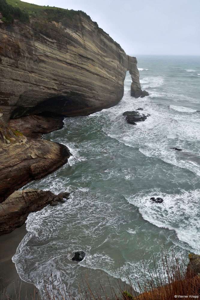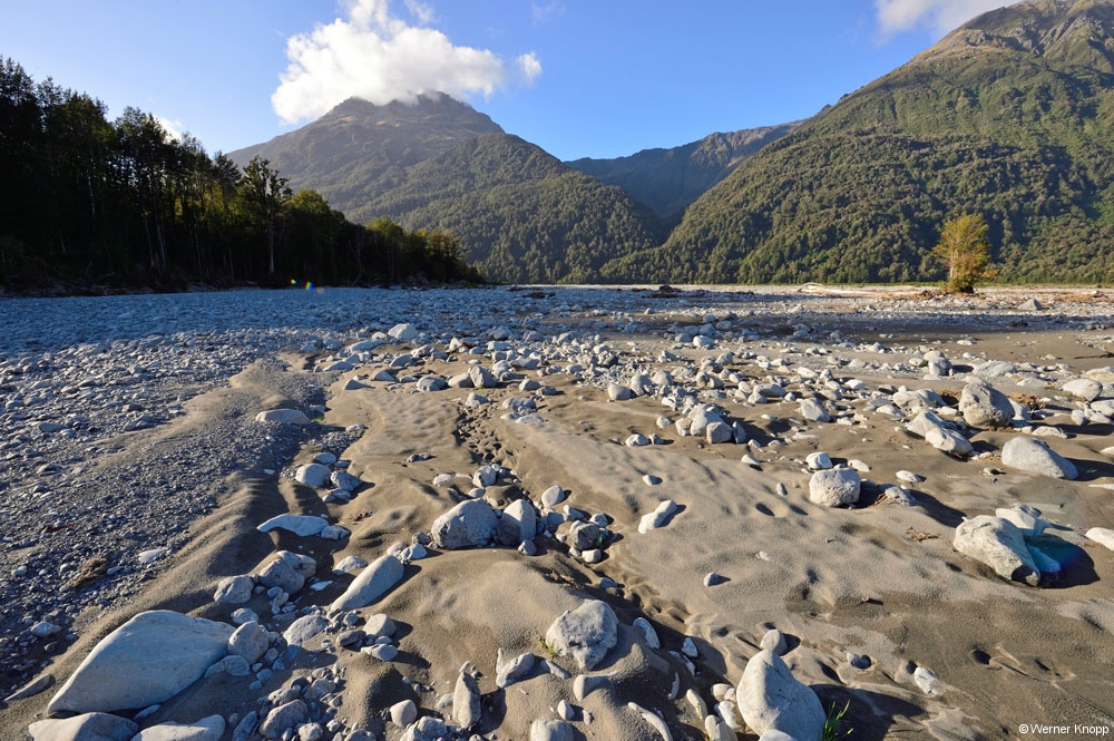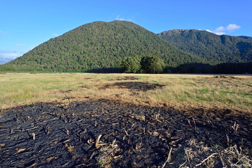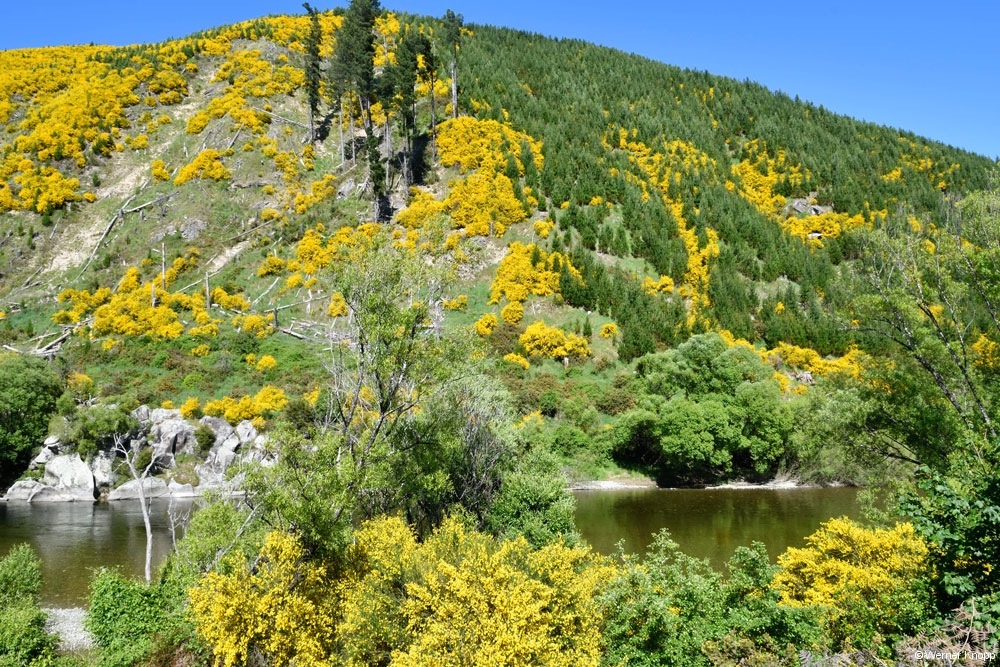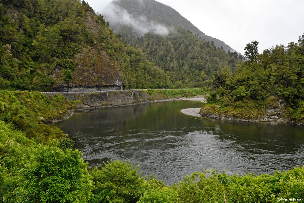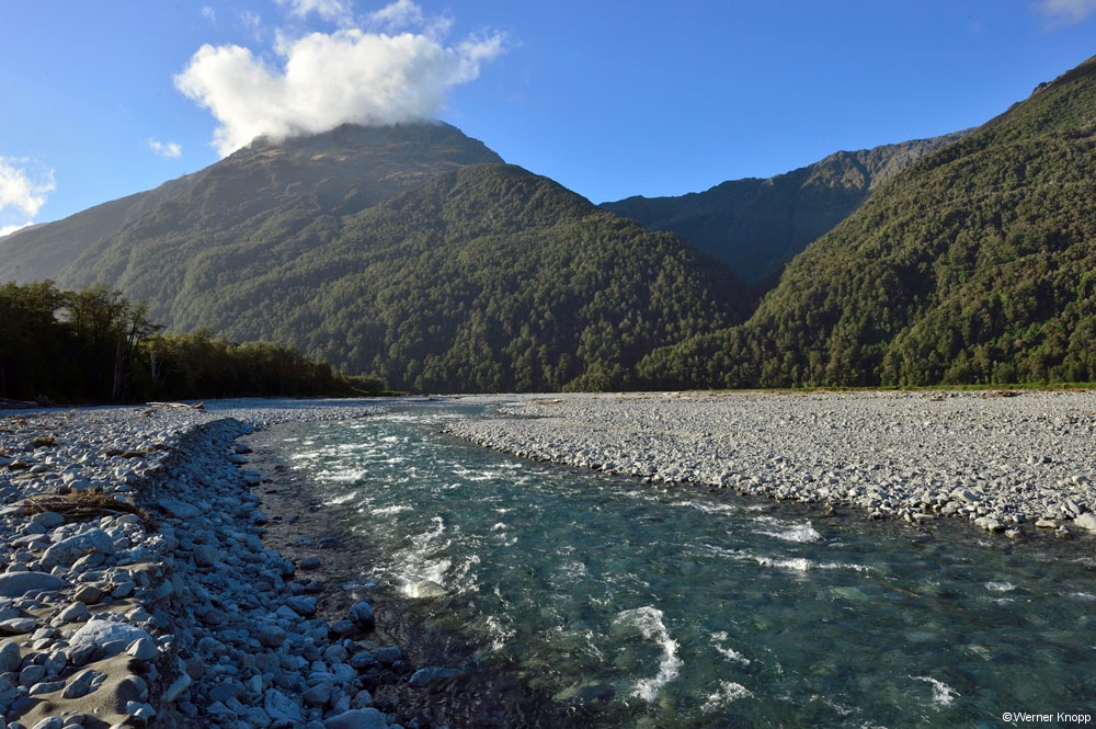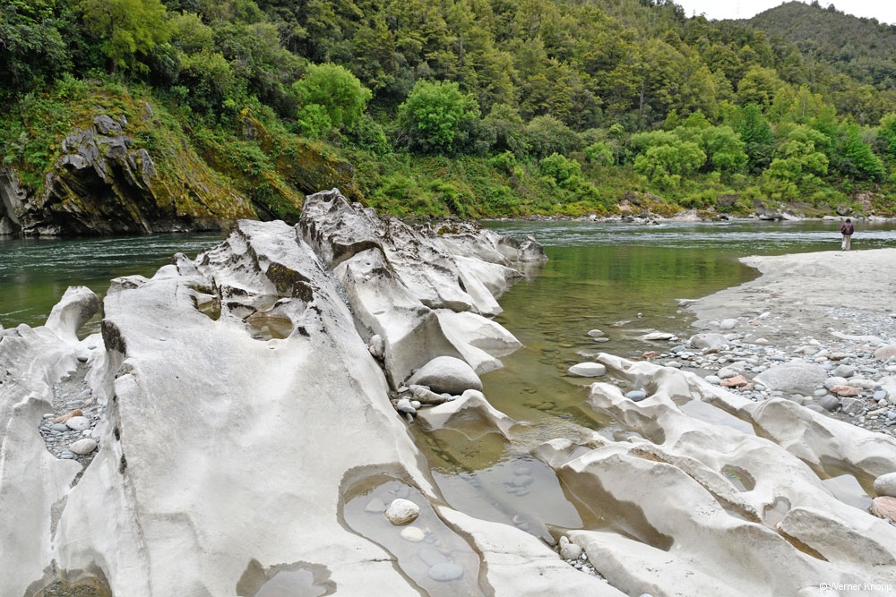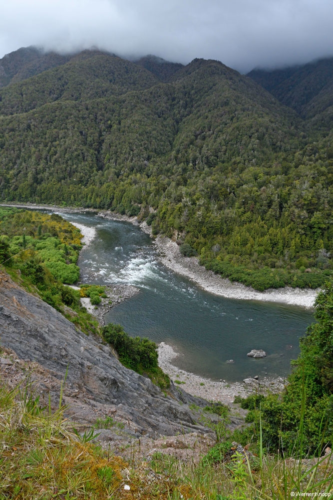 Cape Farewell war unser nächstes Ziel und wieder einmal wurden wir von einer kurvenreichen Fahrt diesmal über die Takaka-Hills überrascht. Haltebuchten gab es nur wenige, so dass Werner hier wieder sehr konzentriert fahren musste. Spitze Felsbrocken schauten aus dem grünen Gras heraus, das sah interessant aus. Auf unserem Freedom-Platz am Fluss angekommen sahen wir lauter große Pfützen, in denen wir uns nicht festfahren wollten. Gut, dass wir noch einen kleinen sicheren Platz fanden! Bisher hatten wir dabei immer Glück. 😌Hier beobachteten wir wieder den Tui, der sich den Nektar aus den Blüten holte, einfach schön! 🐦