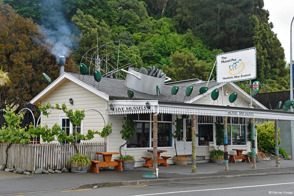 Der erste Tag begrüßte uns mit Regen und so wanderten wir bei nasskaltem Wetter durch Havelock, beobachteten schwarze Schwäne und aßen leckere „green mussels“. Die grünen Muscheln werden hier in Muschelfarmen gezüchtet und vermarktet. Für Touristen gibt es Besichtigungs- und Verkostungsfahrten, allerdings nicht bei diesem Wetter. 🌨