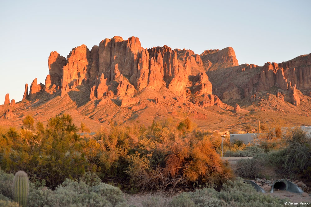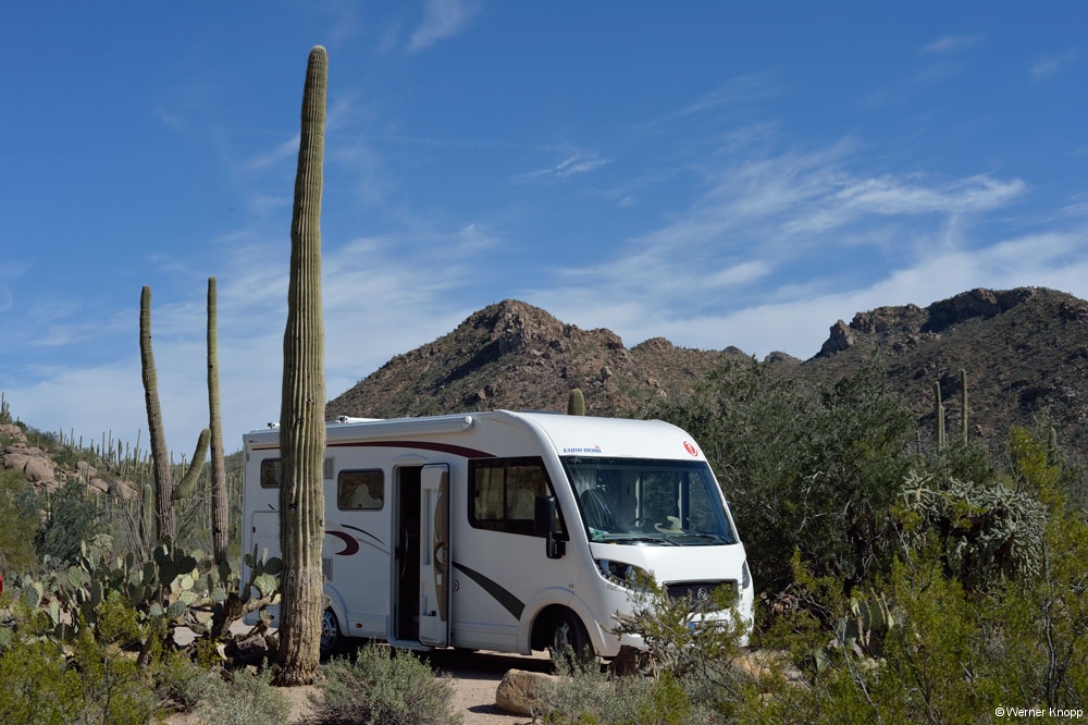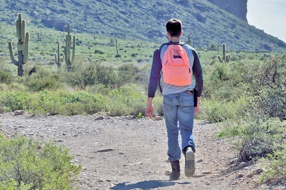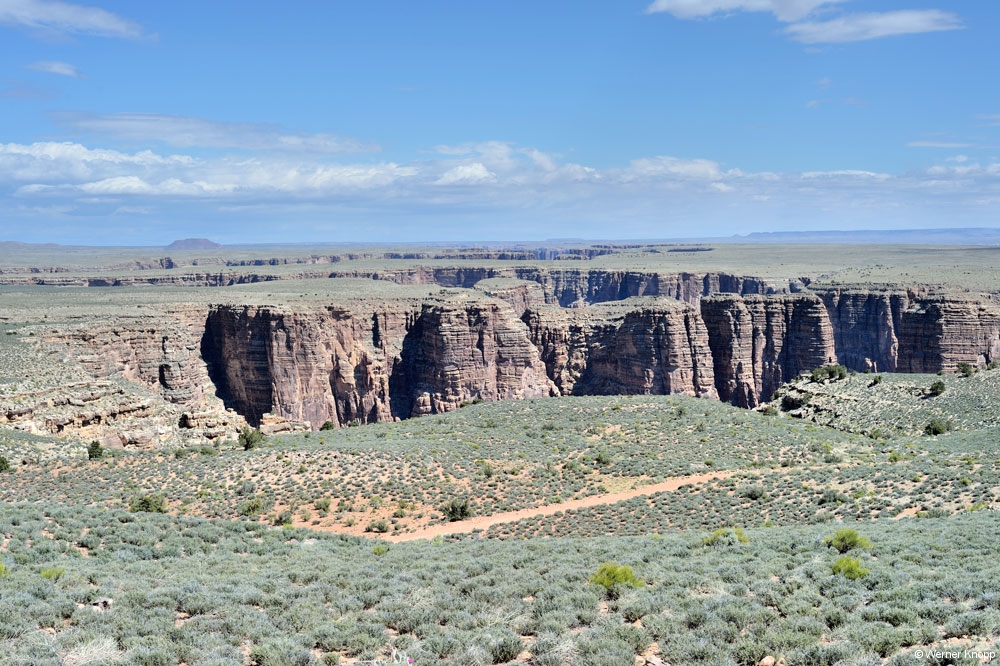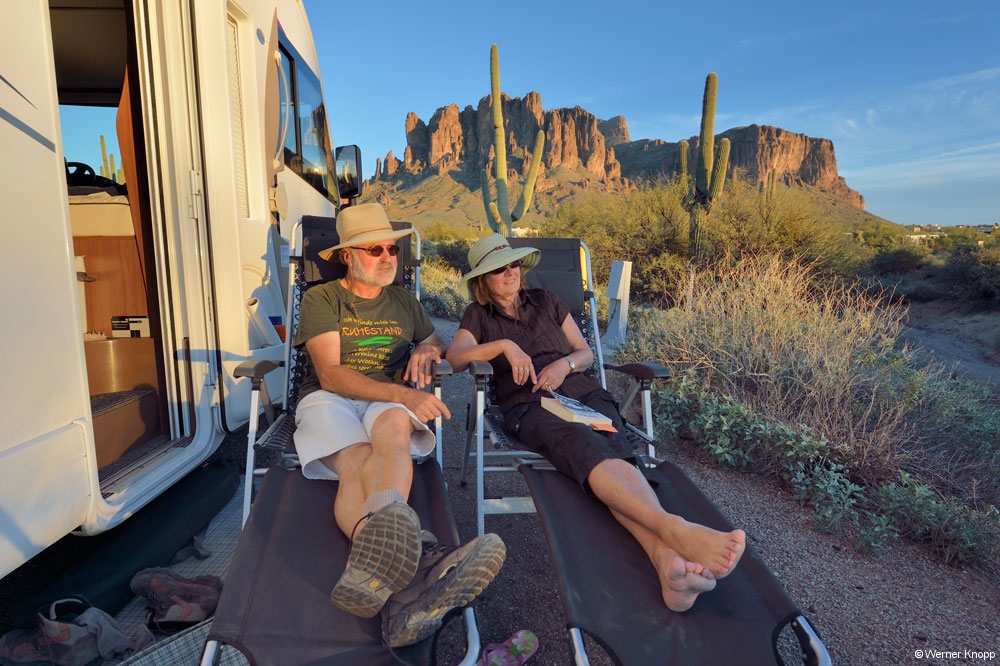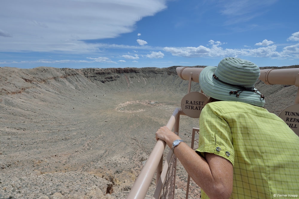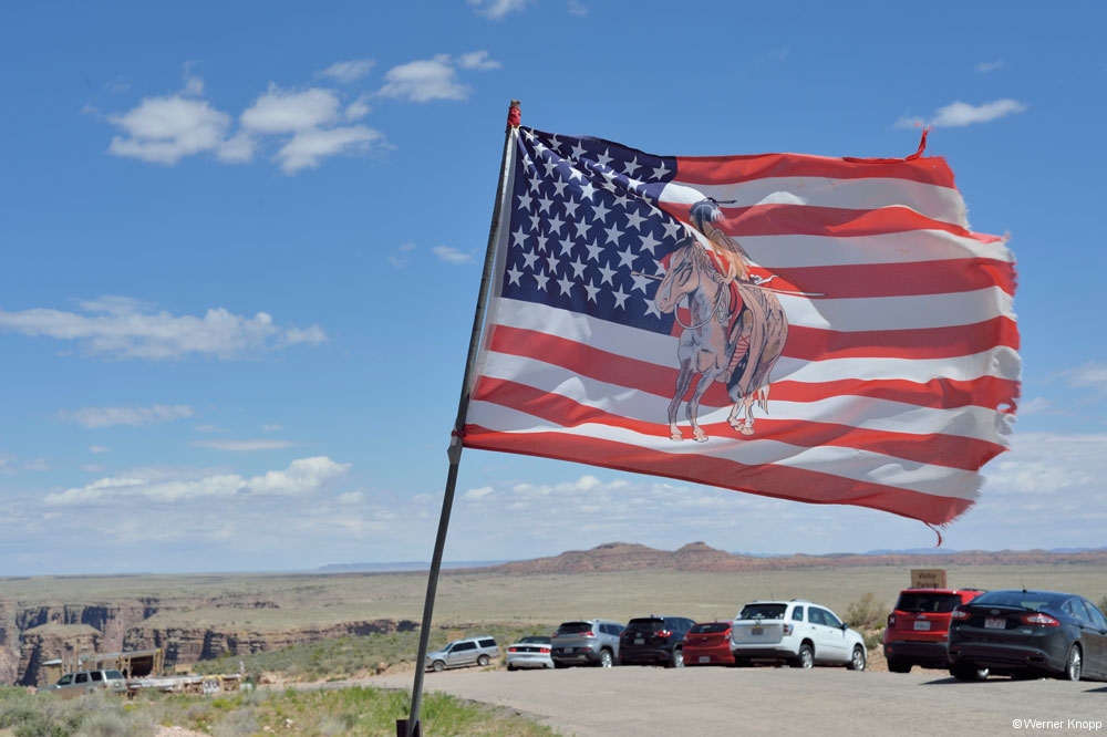 Die Tage in Page vergingen wie im Flug. Wir fuhren zum Horseshoe Bend – Overlook und sahen uns den Colorado von oben an. Hier war wieder viel los. Werner scheute keine Mühen, um die Schleife des Flusses zu fotografieren. Er legte sich auf den Boden, hielt die Kamera weit nach vorn und schon war das Bild im Kasten. – Hut und Kamera blieben hier noch unversehrt… 😉