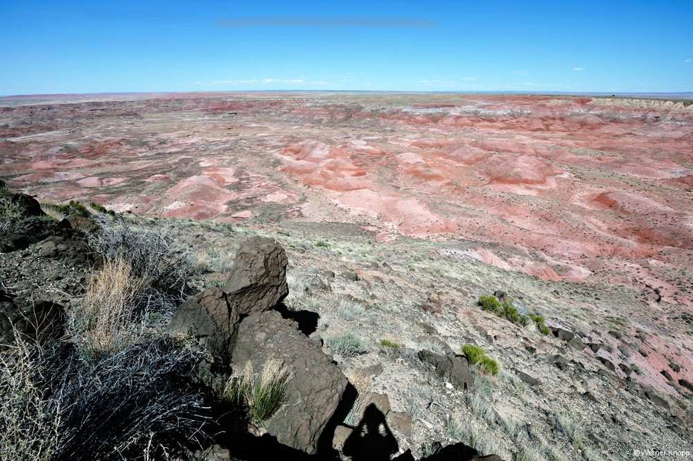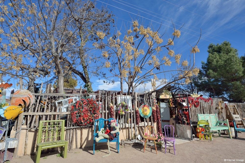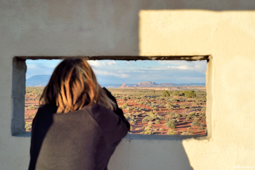 Wieder fuhren wir durch das Gebiet der Navajos, eine wunderschöne Gegend mit roter, brauner und orangefarbener Erde und vielen heraus ragenden „Monumenten“. Raststätten gab es keine, es sei denn man bezahlte Eintritt, z.B. an der Stelle, wo vier Bundesstaaten aneinander grenzen: Four Corners: Utah, Colorado, Arizona und New Mexico.