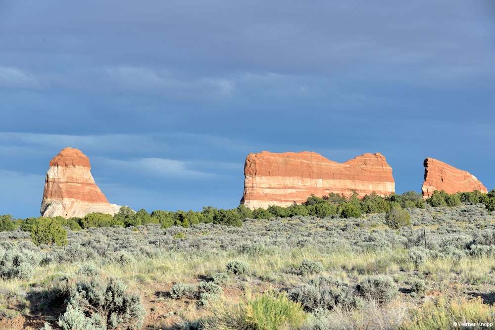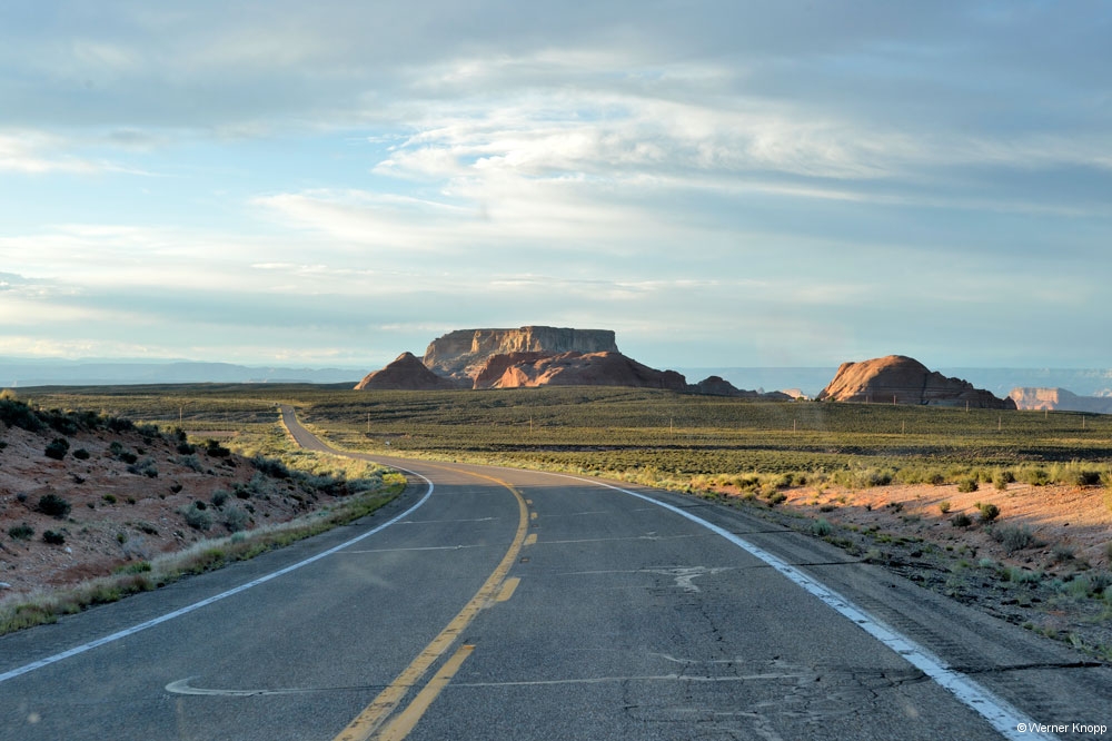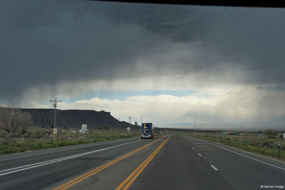 Eigentlich wollten wir weiter in den Norden zum Arches NP fahren, aber aus zwei Gründen änderten wir unseren Plan. Ein Ehepaar aus Florida hatte uns Fotos des Antelope Canyons gezeigt und die Wettervorhersage versprach nichts Gutes… Also beschlossen wir nach Page, am Lake Powell gelegen zu fahren um von dort aus die Umgebung zu erkunden. 370 km Fahrt lagen vor uns – große Lust hatte ich zu diesem Schlenker nicht…😳