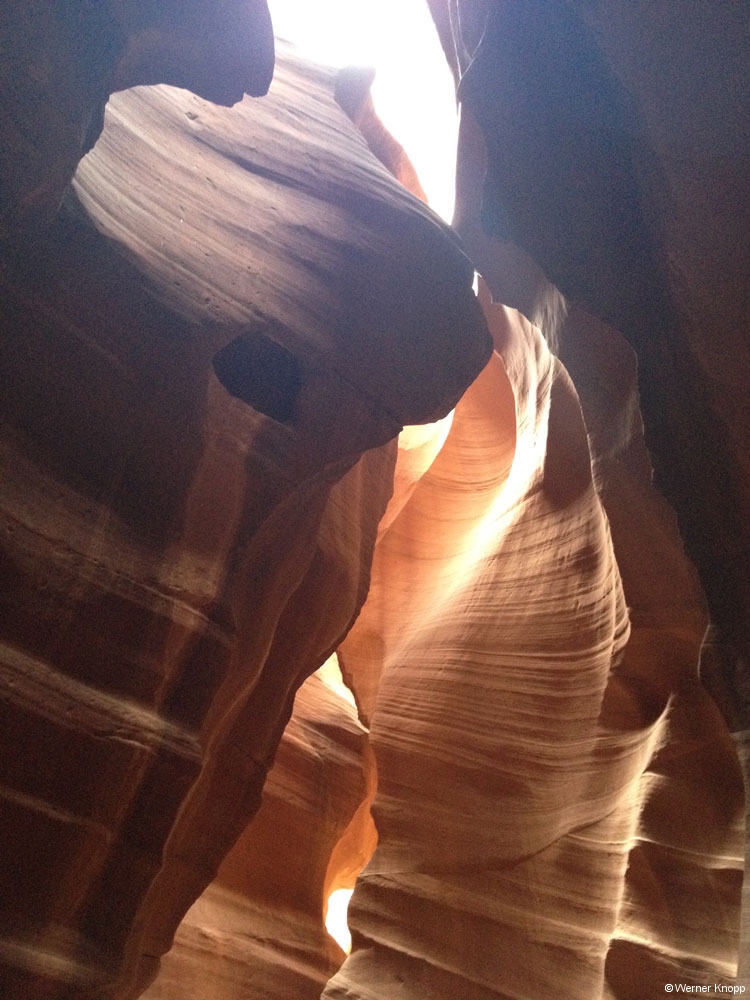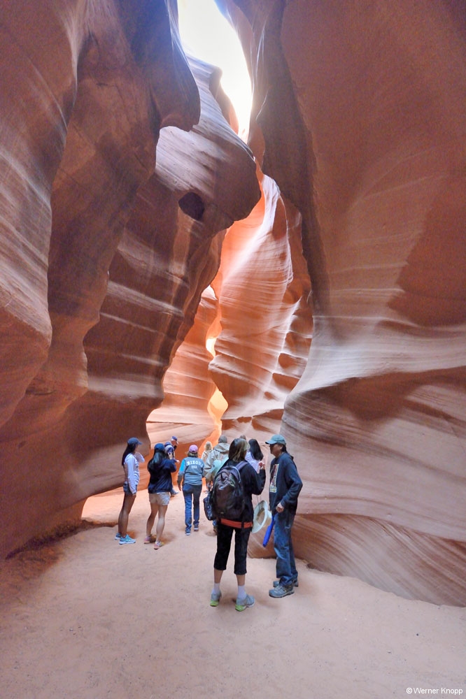 Unser Guide, ein Navajo führte uns durch den engen Canyon und zeigte uns die schönsten Stellen zum Fotografieren, ein traumhafter Canyon!Früher war er Erholungsort für die Navajos und Rückzugsgebiet für Antilopen im Winter. Durch den Bau des Staudamms wurde den Antilopen der Weg abgeschnitten. 🤔