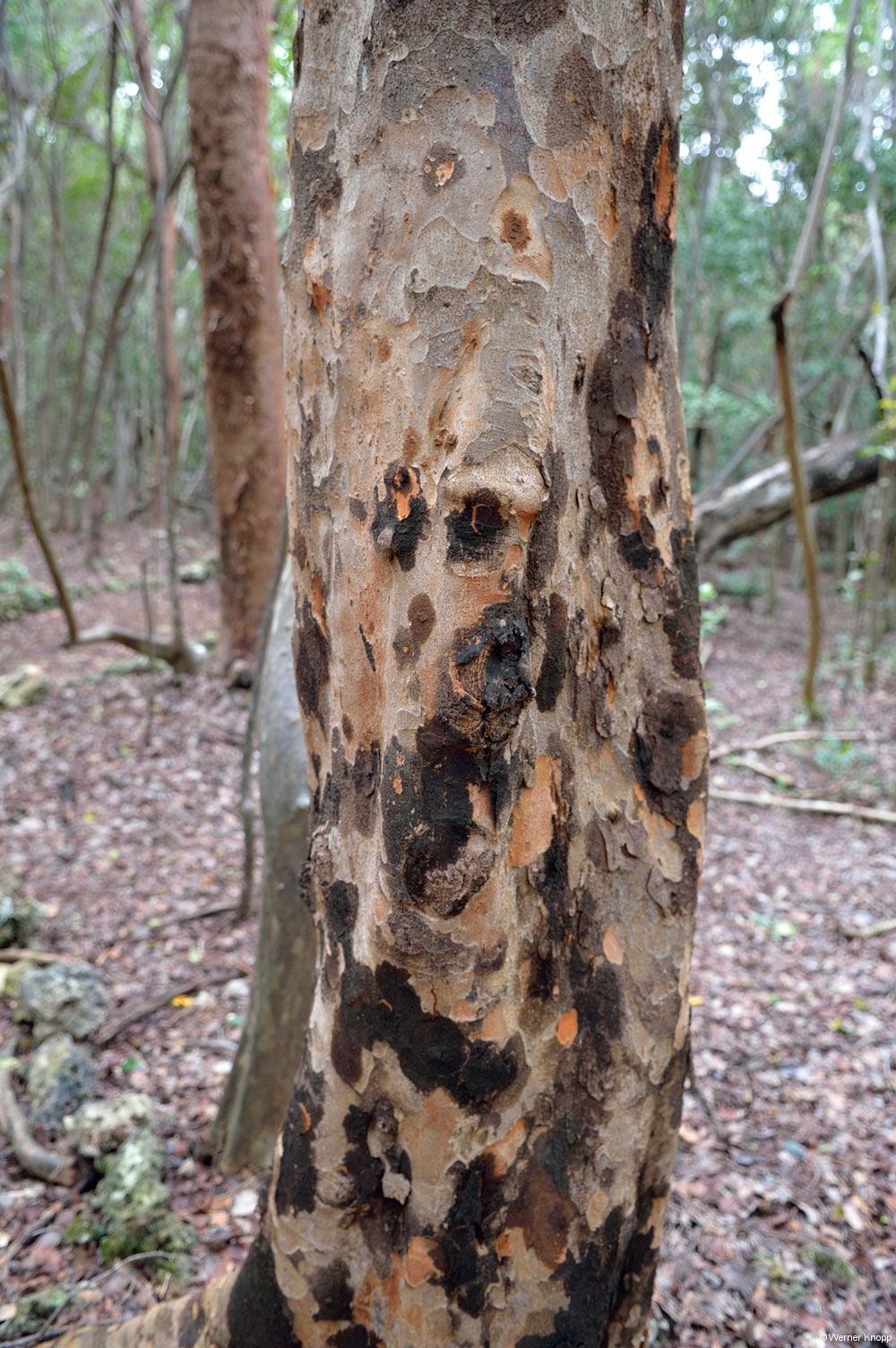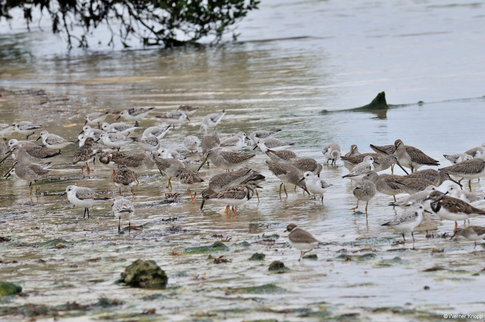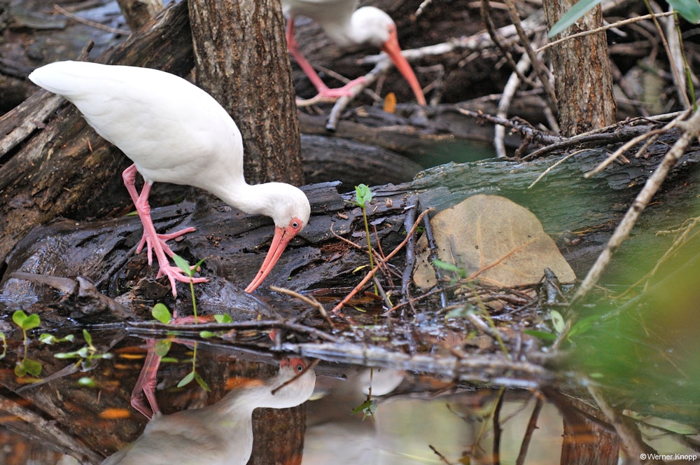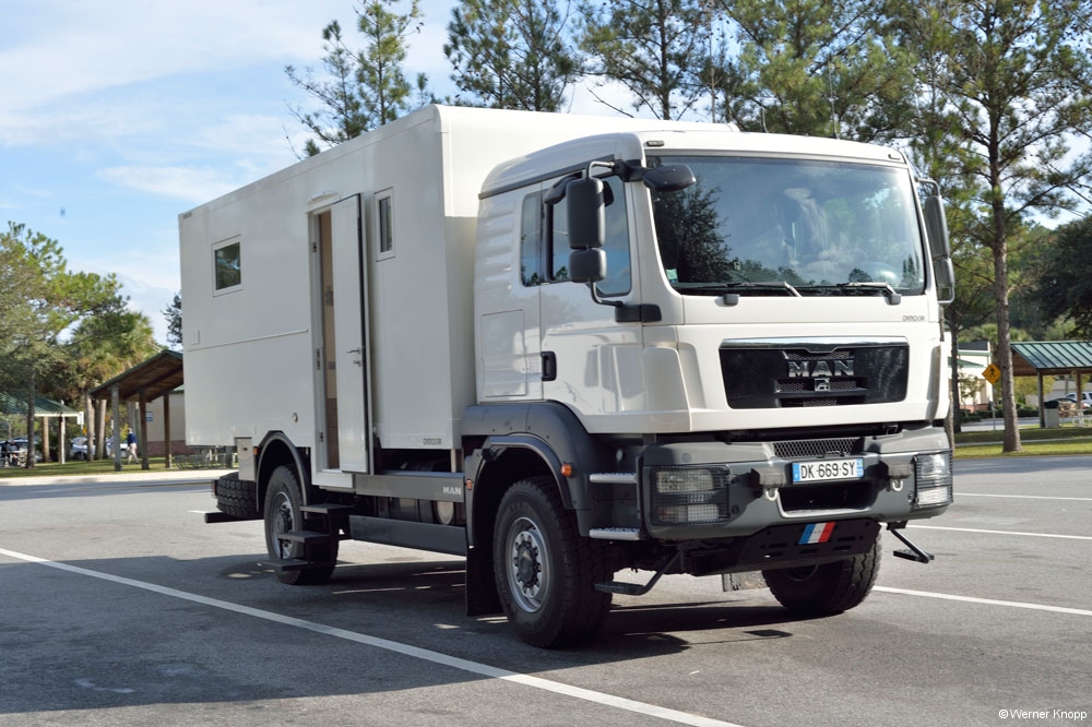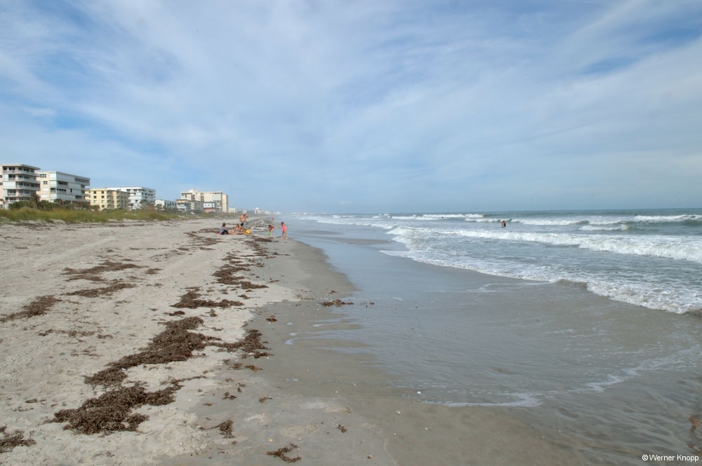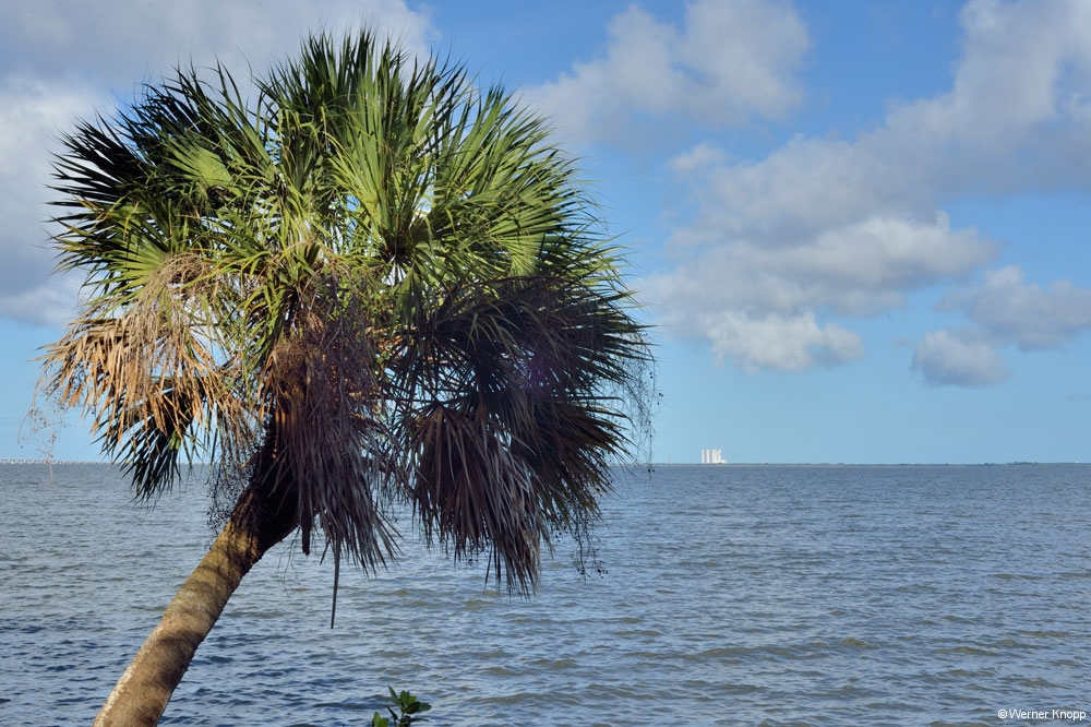 Wie in allen anderen State Parks gab es auch hier einen „Trail“, den wir am nächsten Tag gingen. Auch dieser stand teilweise noch unter Wasser. Hier sahen wir viele große Fische im flachen Wasser schwimmen. Ein Ukrainer aus Indiana erklärte uns, dass man diesen Fisch, den Tarpon, an der Flosse erkennen kann, die aus dem Wasser herausragt. Auf dem Trail lernten wir auch „Poison Wood“ kennen, welches starke Hautverletzungen verursacht. Selbst wenn Regentropfen von diesem Baum fallen, verletzen sie die Haut! Der viele Müll, der unter den Bäumen lag, stammte nicht von den Spaziergängern, sondern war angeschwemmt worden. Die stark befahrene Wasserstraße, die an Südflorida vorbeiführt, hinterlässt ihre Spuren. Am nächsten Morgen zeigte sich unser Platz bei Sonnenschein und blauem Himmel von seiner schönsten Seite. Auch die „Wasserstraße“ war schon ein wenig verdunstet, jedoch kamen wir noch nicht trockenen Fußes zur Dusche. 😉