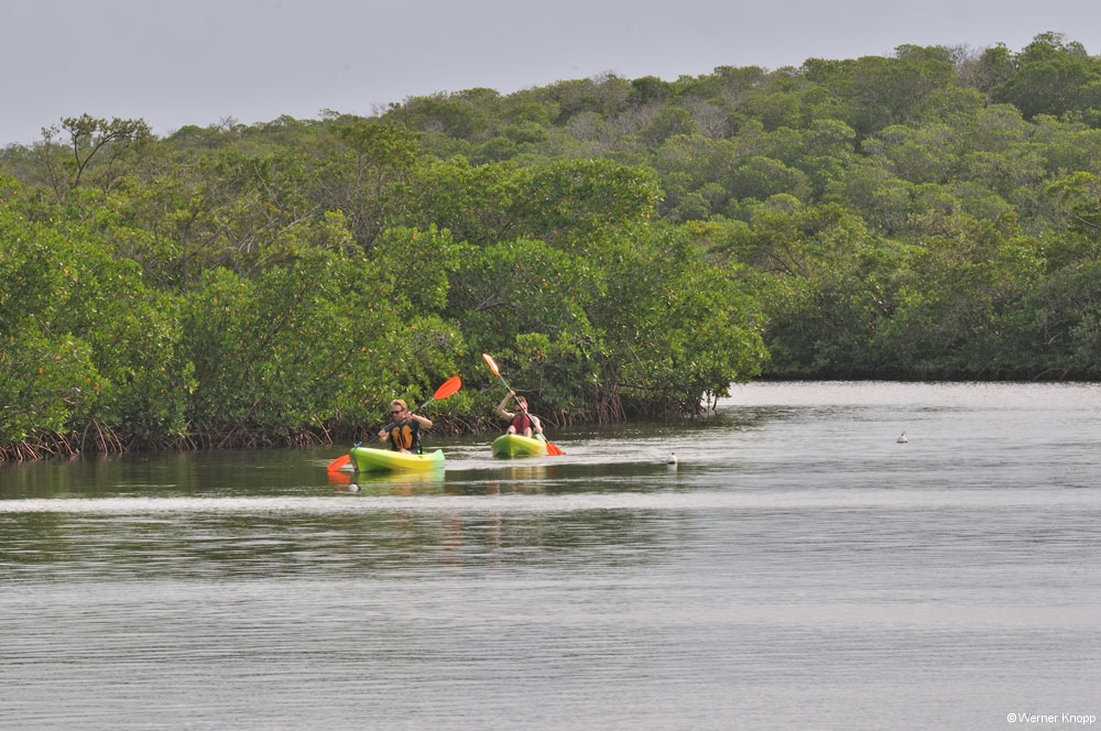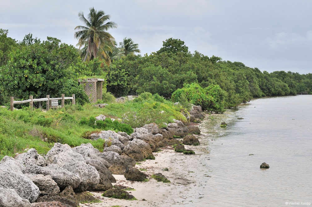 Dieser State Park ist ein guter Standort zum Schnorcheln, Kanu/Kayak fahren oder um eine Bootstour zum Korallenriff zu machen. Denn hier im Meer befindet sich das größte lebende Korallenriff der USA, bzw. das drittgrößte der Welt. Unsere Bootstour wurde abgesagt wegen….richtig geraten wegen des Regens! – Auf unserer Rücktour eine Woche später fiel die Glasbodentour nicht ins Wasser, obwohl es kurz vorher auch goss. Aber vom Korallenriff sahen wir nichts, da mir schlecht wurde, als das Boot auf dem offenen Meer in den Wellen schaukelte – das war´s dann, keine Fotos vom Korallenriff und den bunt schillernden Fischen! Denn Werner ließ mich mit meinem Schicksal nicht allein. 😉 –