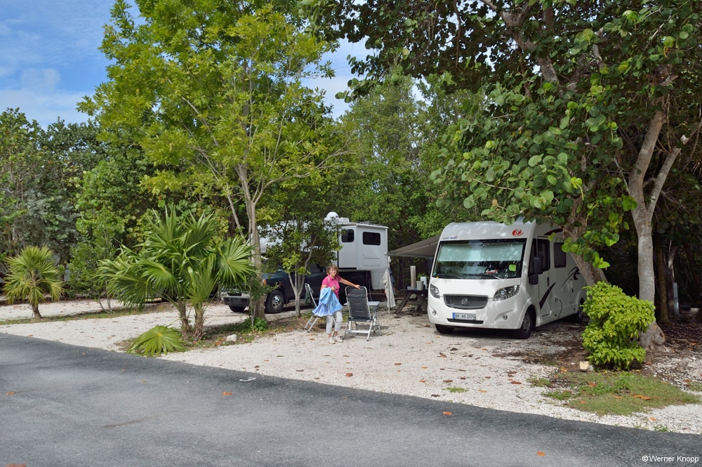 Die Fahrt von Florida City bis Key Largo war eine Fahrt durch absolute Wildnis – Swamp und kleine Büsche auf beiden Seiten, alles eingezäunt – und türkisfarbene Leitplanken, einfach cool! 🙂 🙂 🙂 Wir hatten keinen Campground auf den Keys gebucht, hatten aber Glück und bekamen einen Platz im John Pennekamp Coral Reef State Park. 🙂