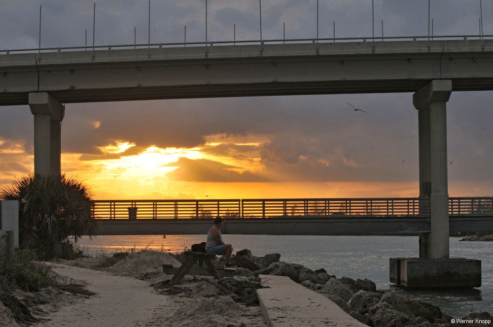 Die Fahrt lief gut und Werner freute sich unbändig auf die Florida Keys. 🙂 –Diese Inselkette im Süden Floridas, die sich über 180 km ins Meer erstreckt, liegt zwischen dem Atlantischen Ozean und dem Golf von Mexiko. Die vielen kleinen Inseln sind durch Brücken verbunden, die Hauptstraße ist der Overseas Highway. –