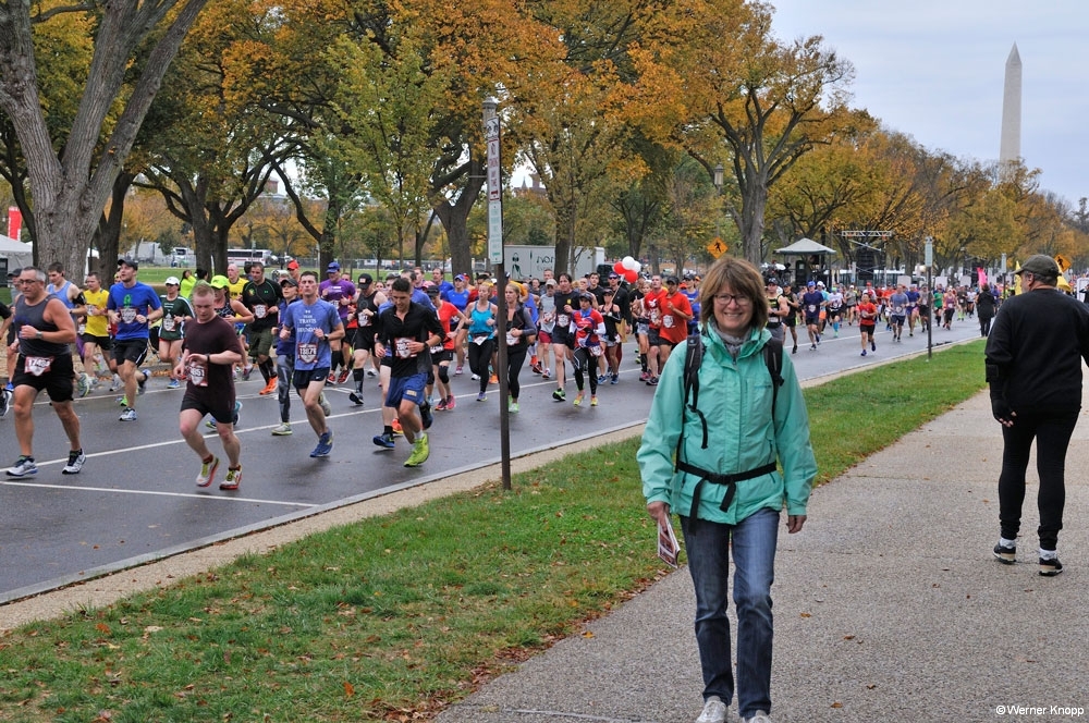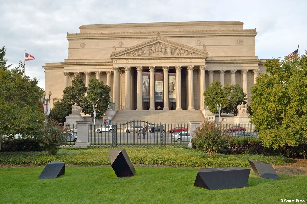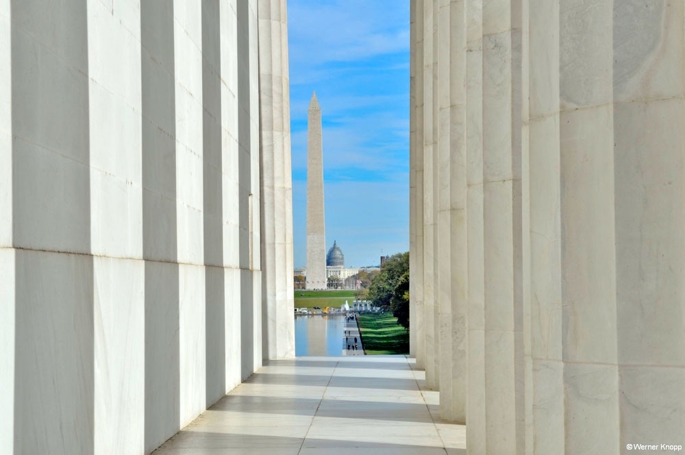 Bei herrlichem Sonnenschein erreichten wir das Lincoln Memorial (einen Tag vor Renate Künast 😉 ). Hier trafen sich die Touristen! In einem großen Tempel ist Lincoln auf einem Stuhl sitzend dargestellt. Viele Treppen führen hoch zu diesem „Thron“. Die Skulptur wirkte auf uns übermächtig und überhöht. Heute las ich, dass sie eigentlich wesentlich kleiner geplant war, aber dann nicht zu diesem Tempel gepasst hätte…. Auf jeden Fall war der Blick auf den „Reflecting Pool“ und das „Washington Monument“ genial. 🙂