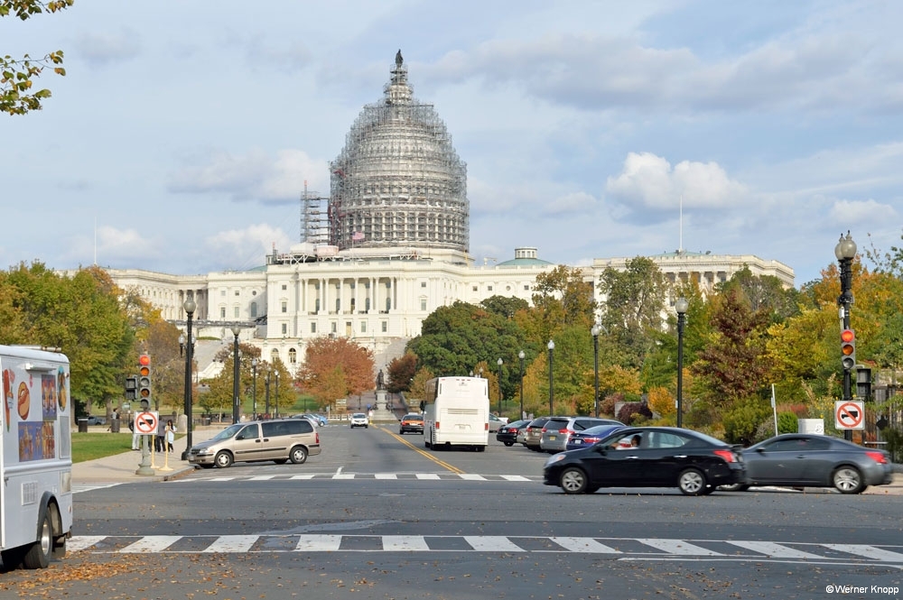 Nach so vielen Eindrücken waren wir hungrig und suchten den „Old Ebbitt Grill“, der uns empfohlen worden war, wenn wir mit Insidern essen wollen. Dieses alte Restaurant liegt ganz in der Nähe des Weißen Hauses. Nach einigem Hin und Her gingen wir hinein und gönnten uns ein Essen mit „Insidern“. Das Restaurant war gut besucht, leise war es nicht 😉 und ständig kamen und gingen die Gäste. Als wir das Lokal verließen, warteten schon einige Leute draußen, Taxen kamen mit VIPs an und ein Schuhputzer hoffte auf Kundschaft.