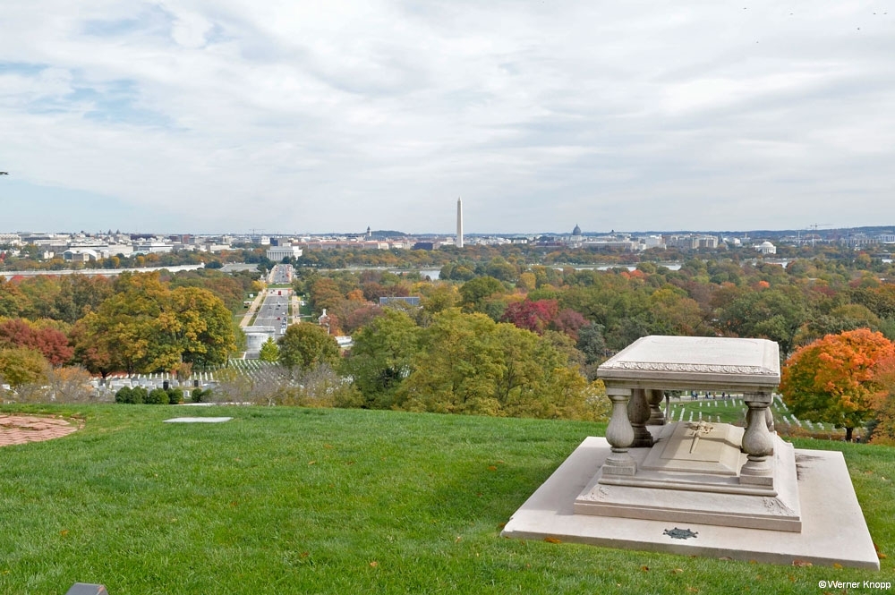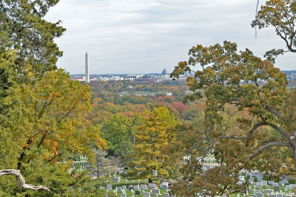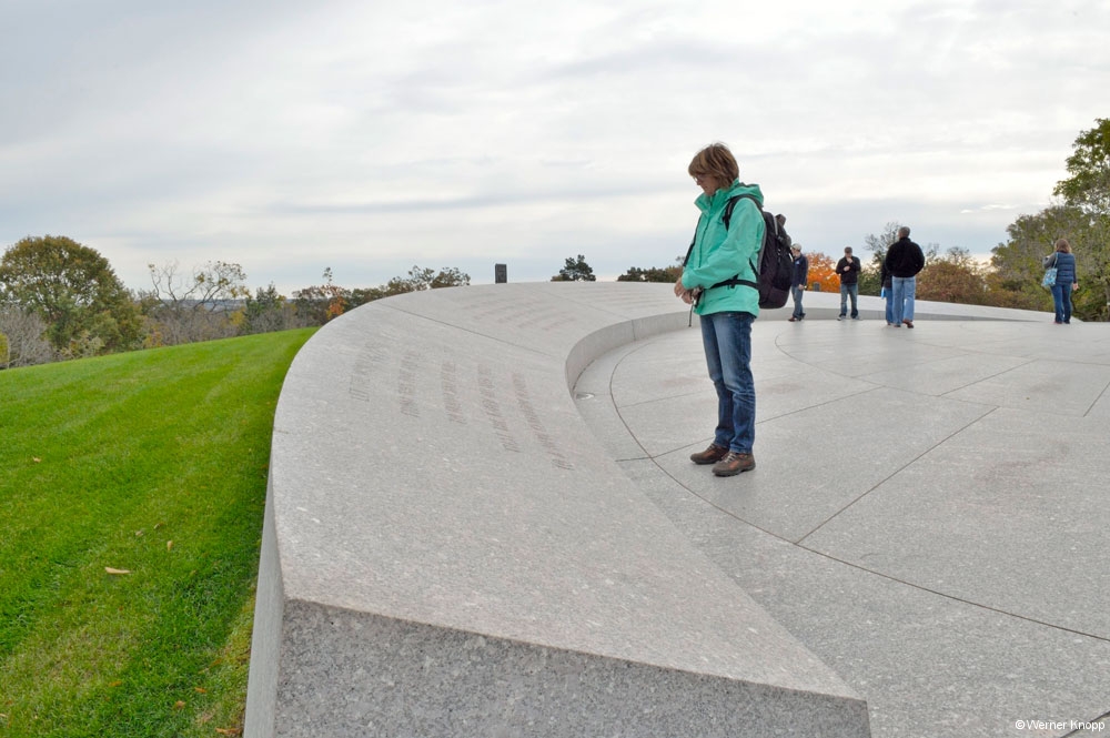 Am nächsten Tag standen der Besuch des Arlington Friedhofs und die Memorials auf dem Programm. The „Arlington National Cemetry“ – „America`s Shrine to those who honorably served our Nation“ ist ein riesiger Friedhof und wieder wurden wir mit den vielen Kriegen konfrontiert. Wir besuchten das Grab John F. Kennedys und seiner Familie, auf dem die ewige Flamme brennt. Auf einer Mauer konnten wir Zitate lesen. Wir gingen noch zum „Civil War Unknown Monument“, um dann an den vielen Grabsteinen vorbei in Richtung Washington D.C. zu gehen.