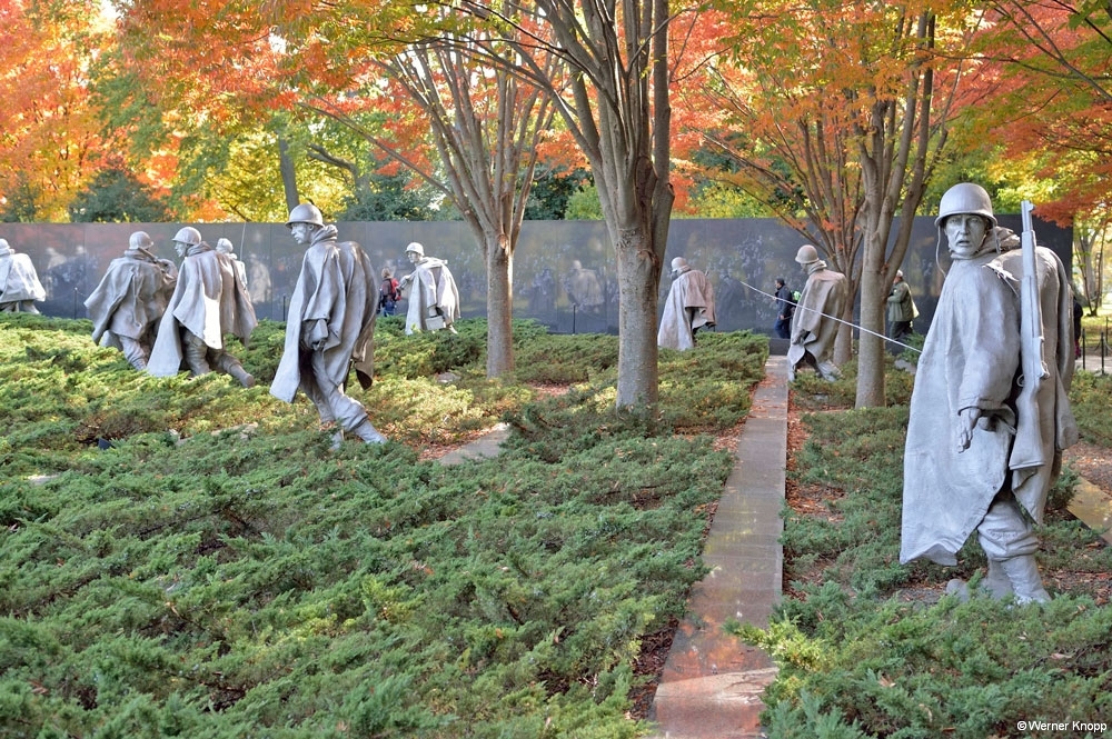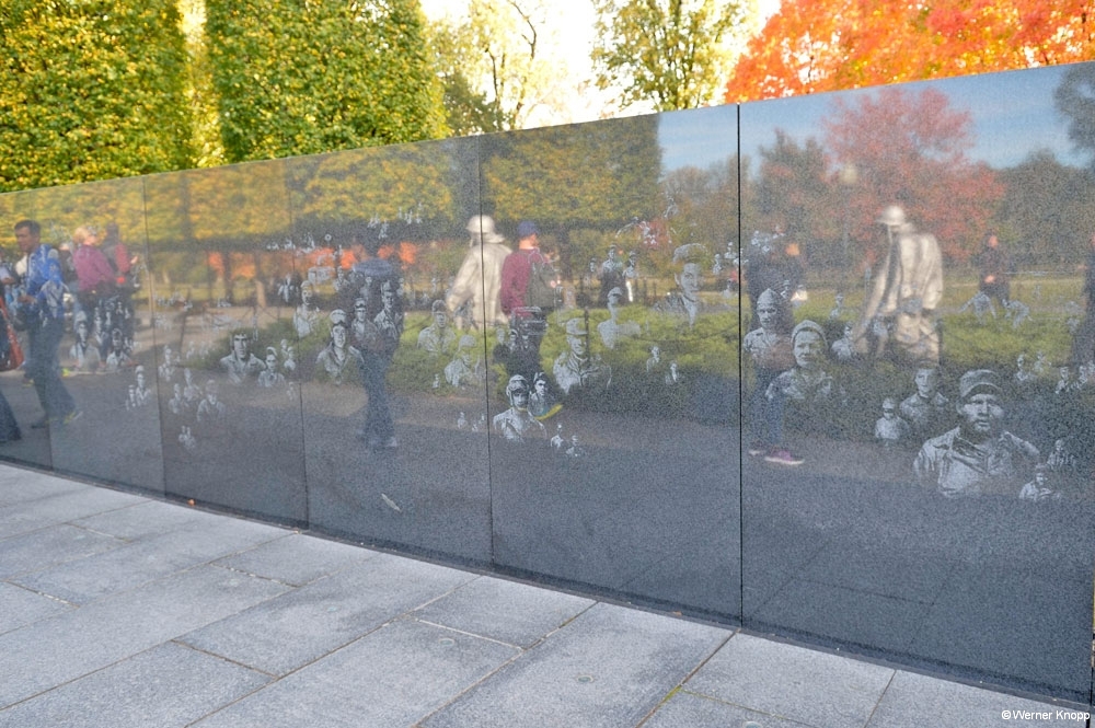 Weiter ging es zum „Korean War Memorial“, einem denkwürdigen Ort. Mit gemischten Gefühlen gingen wir an den Skulpturen (Soldaten im Krieg) vorbei. Erschreckend! – Wir schauten uns die Gesichter an – ernst, ängstlich, fragend. Sie gingen in ein Land, das sie nicht kannten und trafen Menschen, die sie nicht kannten….lasen wir auf einer Tafel.